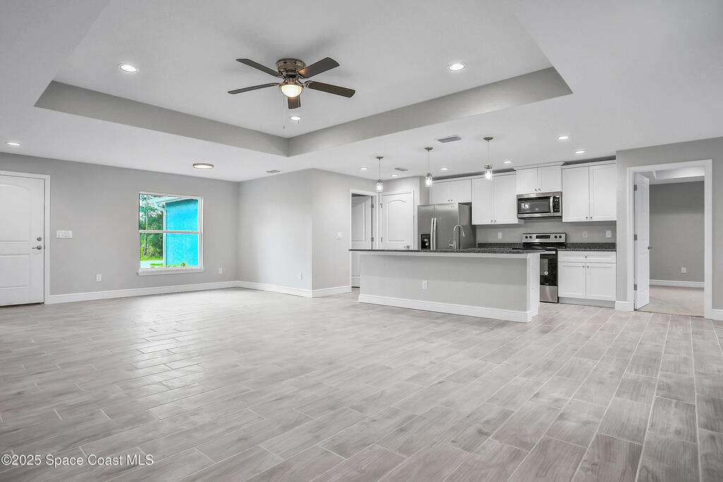 This new construction single family home is being built right now! The gorgeous open concept home features 4 bedrooms and 2 full bathrooms with double sinks and two walk-in closets in the primary bedroom/bathroom. Also included is an attached 2 car garage, Hurricane Impact DOOR AND WINDOWS, laundry room, granite kitchen/bathroom counter tops, pantry, brushed nickel fixtures, upgraded lighting package, two tray ceilings, and brand new stainless steel appliances REFRIGERATOR, microwave, electric range and dishwasher, includes upgraded WATER SOFTENER SYSTEM FOR THE WELL WATER. Estimate CO 11/10/2025