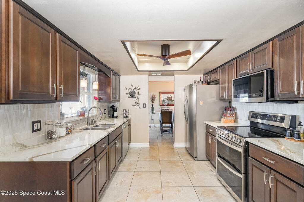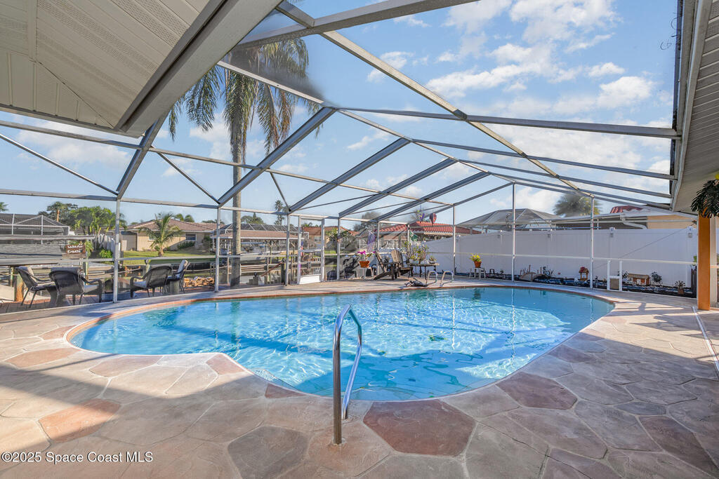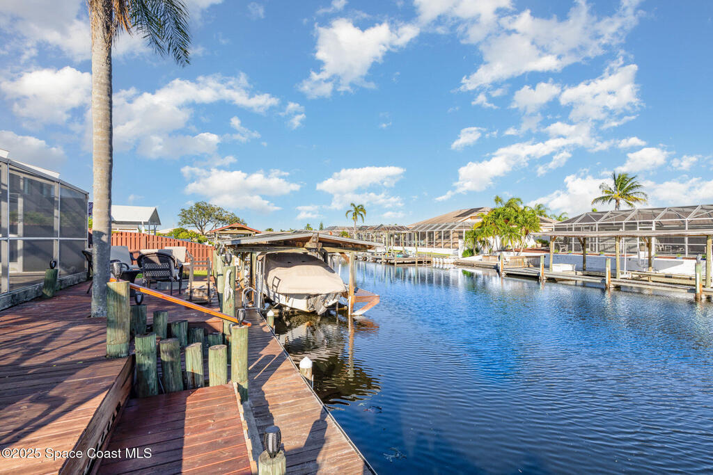 Reduced & Motivated! Waterfront pool remodeled home with 4 bedrooms & 3 bathrooms! Primary bedroom suite plus a separate FULL suite along with 2 more bedrooms & a pool bath in this desirable split plan! Gorgeous kitchen with quartz counters & matching wet bar! Sunken spacious great room! Updated bathrooms! Large entertaining screened patio & pool area! Covered boat dock with lift (boat for sale too!) Direct boating access through Sykes Creek to both the Banana River & Indian River along with access to the ocean! Impact windows and sliders means no putting up shutters before a storm! PVC plumbing & alumicons installed! Underground utilities! Fenced yard with sprinkler system too! Come enjoy this waterfront paradise where you can paddleboard with the dolphins, boat to a waterfront restaurant, pull the family tubing behind the boat, enjoy some island hopping in the river, go offshore fishing or just enjoy an evening stroll through the canals! You will love every minute!