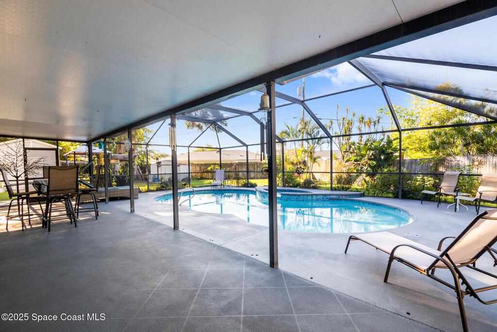 Stylish, spacious, & designed for entertaining, this beautifully updated Pineland Park pool home offers the ultimate Florida lifestyle inside & out! Situated on a huge private lot with a fully fenced backyard, the property is surrounded by mature trees that create both privacy & a park-like setting. Step out of the French doors to your own backyard oasis featuring an incredible sparkling pool & hot tub, recently resurfaced & featuring a new pool heater & salt system. The pool area includes a spacious under-truss covered porch & screened lanai, perfect for lounging, dining, or entertaining. Beyond the pool, the huge backyard offers endless space for recreation, play, or gatherings, & includes two storage sheds for tools, pool supplies, & outdoor gear. Inside, the home boasts a true open floor plan with a large great room & dining area, highlighted by luxury vinyl plank flooring throughout the entire home - no carpet! The fully updated kitchen is a showstopper featuring modern cabinetry