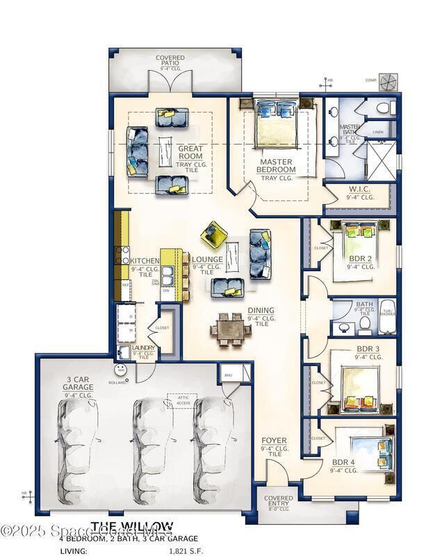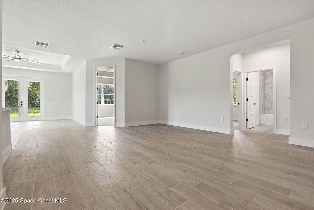 Move in Ready! $15,000 Flex Cash offered! This thoughtfully designed home features a spacious 3-car garage. The home has energy-efficient impact windows throughout. The grand 8' front door and soaring 9'4'' ceilings create an impressive ambiance, ideal for entertaining in this elegant Palm Bay residence. Additional upscale features include porcelain wood-look tile flooring, granite countertops, soft-close cabinetry, and many other premium upgrades. The owner's suite offers a luxurious walk-in shower and a large walk-in closet for added convenience. Please note that the photos showcase a previously built home with the same floor plan.