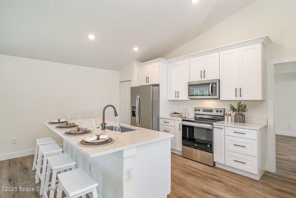 Brand NEW and READY for you! Here's your chance to own a beautiful brand-new home featuring 4 bedrooms, 2 bathrooms, and a 2-car garage! This home showcases a spacious open-concept kitchen complete with a large island, elegant quartz countertops, and stainless steel Whirlpool appliances, including a range, refrigerator, dishwasher, and above-range microwave. The kitchen is beautifully designed with white shaker style cabinets and striking 42'' upper cabinets, alongside plank tile flooring throughout the home!The generous master suite includes a roomy walk-in closet and a luxurious bathroom featuring a freestanding tub, a beautifully tiled walk-in shower, and a double sink vanity. Other notable features include ceiling fans in all bedrooms and the living room, 5 1/4'' baseboards, impact windows, inside laundry room, irrigation system and fenced backyard. Don't wait--schedule your showing today!