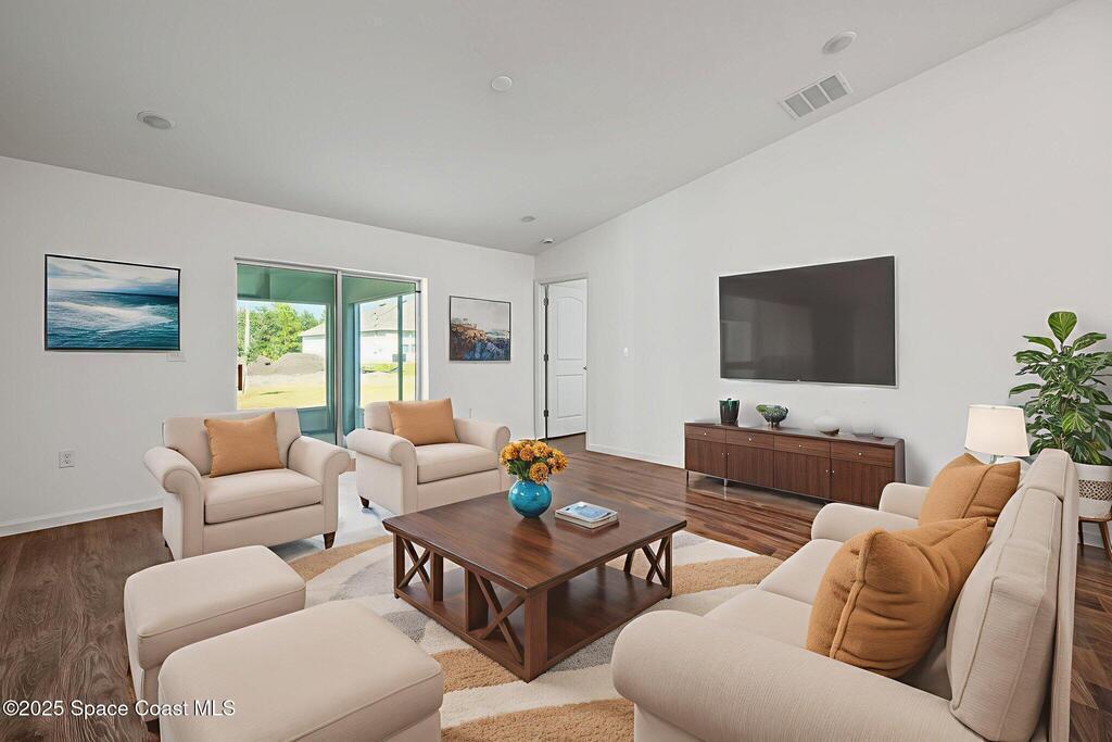 Brand New-4 BD/3BA Home with 2-car Garage & large 20x12 Trussed Covered Screened Porch--perfect for relaxing outdoors while Stone Accents on the Entry Welcome You Home. The Open Concept Island Kitchen features Quartz Countertops, Undermount Sink , 42 in Upper Cabinets with Crown Molding, Stainless Appliances (including a 25-cu. ft. Fridge) + Corner Pantry. Durable Mohawk Revwood Plank floors flow throughout with tile in baths & laundry. The primary suite offers a Tray Ceiling, Huge Walk-In Closet, & an Impressive 6' Tiled Shower. Other features include: 5' Tile Shower in Bed 4 Private Bath, Attic Stairs, Rounded Drywall Corners, Backyard Flood Lights, Dimmable LED lighting in Great Room & Primary. Kitchen & Baths Vent Outside, Inside Laundry, R38 Ceiling Insulation with Radiant Barrier & 1-year Builder/10yr Structural Warranty. Limited-time: $15K Flex Funds or reduced 30-year rate with preferred lender for qualified buyers.