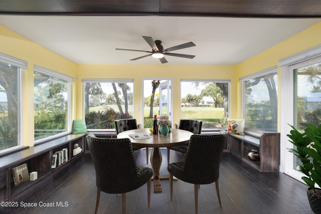 Nestled in a resort-style country club community, this one-of-a-kind remodeled Annapolis model is a golfer's dream. With panoramic views of the Gordon Lewis-designed golf course and a prime location close to the clubhouse, this home captures the very best of Florida living. New roof, gutters and exterior paint! Inside, the open layout showcases a beautifully updated kitchen with Quartzite countertops, renovated bathrooms, and impact windows for peace of mind. Wide-plank solid walnut wood flooring and elegant tile run throughout, complementing the spacious Florida room and screened lanai where you can relax and take in the views. Thoughtful upgrades continue with epoxy flooring in the garage, newer cordless blinds, stylish light fixtures, and countless modern details. Completely move-in ready, this exceptional home blends comfort, style, and lifestyle in a community offering top-notch amenities designed to be enjoyed every day.