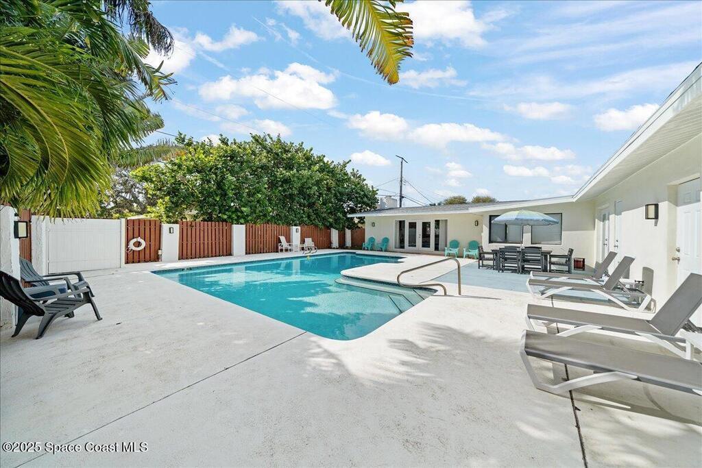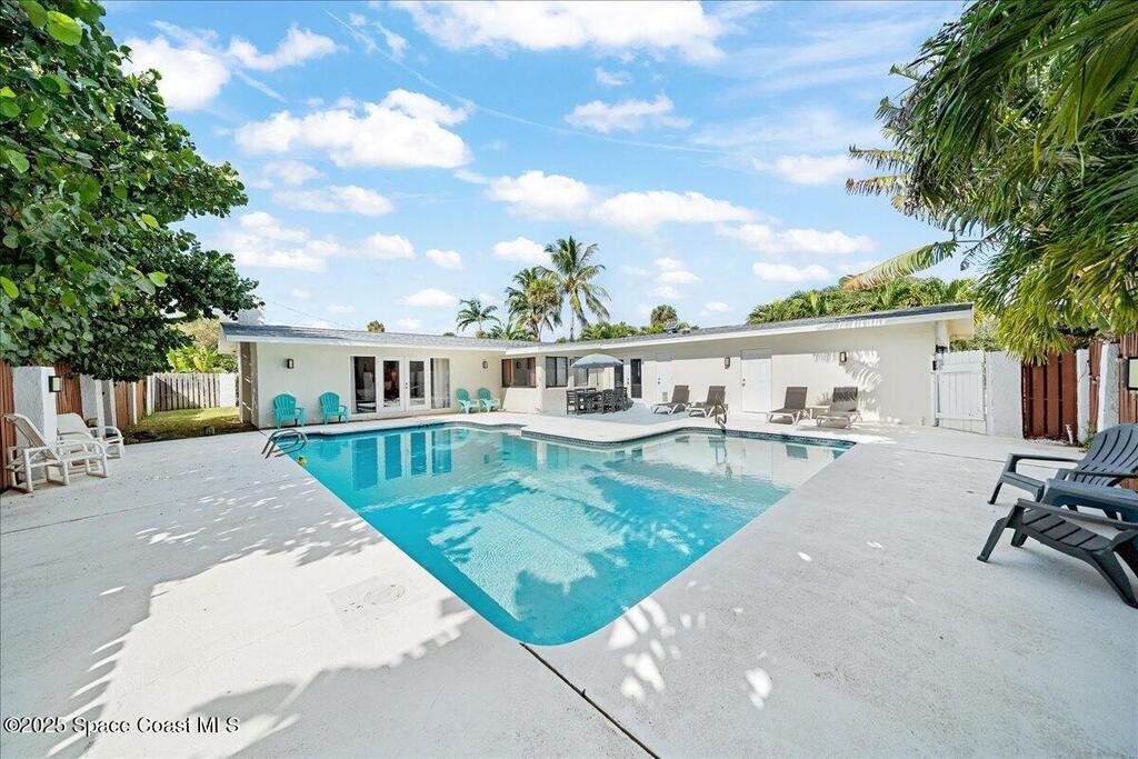 Don't miss this turnkey property in the heart of downtown Cocoa Beach, perfect as a vacation rental, second home or primary residence! This 4 bedroom, 3 full bathroom, concrete block home offers everything you need for a tropical escape or everyday retreat. With a unique open floor plan and a spacious private swimming pool, its ideal for family gatherings. The fenced backyard will keep your pets and children safe as you enjoy the sunshine! Sitting on a 3rd of an acre corner lot, the home features stunning quartz countertops, custom open shelves and an oversized pool and deck. The thoughtful layout includes a private owner's suite with a fireplace and French doors leading to the pool. Just 2 blocks from the beach and within walking distance to popular restaurants, you're only 5 minutes from Ron Jon Surf Shop, 15 minutes to Port Canaveral and 30 minutes to the Kennedy Space Center. Orlando International Airport and Disney world are both about an hour away. Schedule today!
