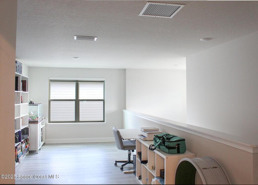Perched gracefully above the surrounding landscape, this stunning residence captures tranquil water views and an abundance of natural light. Step inside to discover soaring ceilings and walls of windows that illuminate the open-concept living area and center-island kitchen perfect for entertaining or everyday living. The kitchen features crisp white cabinetry accented by sleek silver hardware, blending modern style with timeless appeal.The first floor is beautifully appointed with tile flooring throughout, offering both durability and easy maintenance. Upstairs, a spacious family loft provides the perfect retreat or flex space. The owner's suite impresses with a massive walk-in closet, dual vanities, and a luxurious bath with both soaking tub and separate shower. Three additional guest bedrooms, some with walk-in closets, share another full bathroom, giving everyone room to unwind.