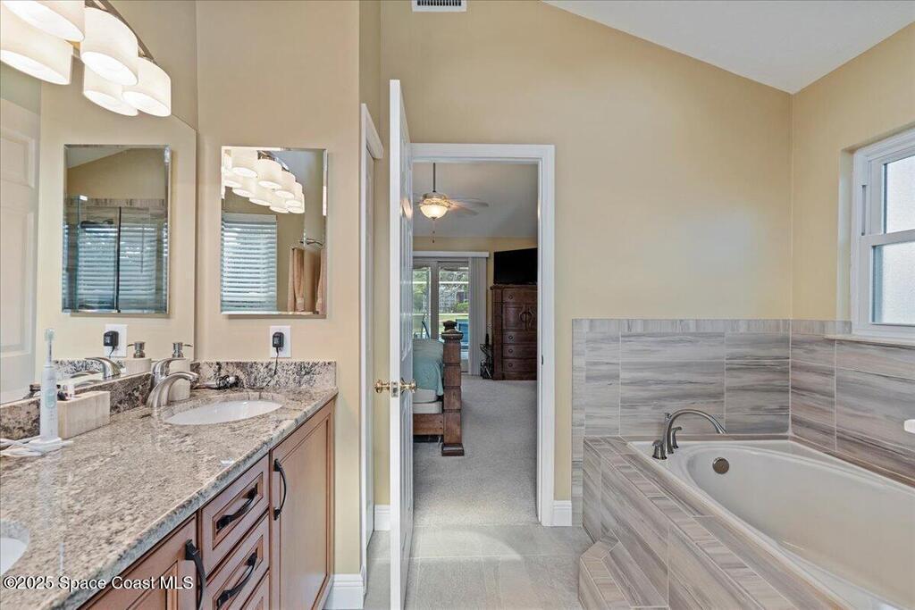 Nestled in the highly sought-after Greystone community with picturesque tree-lined streets, this stunning 4-bedroom, 2-bath residence offers the perfect blend of elegance and comfort. Step inside to discover beautifully remodeled bathrooms and a designer kitchen featuring sleek stainless-steel appliances and modern finishes. The open, split floor plan boasts vaulted ceilings, creating a bright and inviting atmosphere. Enjoy peace of mind with full hurricane-impact windows, sliders, and doors, a 2025 A/C, and a 2021 roof. Relax by your private pool and spa while taking in serene lake and fountain views from your spacious pie-shaped lot. Freshly painted exterior complete this move-in-ready gem. Don't miss your chance to make this Greystone beauty home!