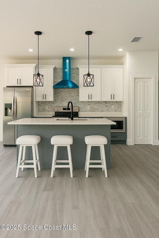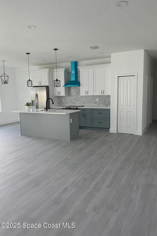 Experience modern living in this brand-new 4-bedroom, 2-bath home located on an oversized 0.28-acre corner lot in Palm Bay, offering plenty of outdoor space and privacy. This property features an open-concept layout with 9'4'' ceilings, impact windows and doors, quartz countertops, stainless steel appliances including refrigerator, and waterproof laminate flooring throughout. Enjoy luxury bathrooms with floor-to-ceiling tile and glass doors, plus thoughtful upgrades such as a water softener system, recessed lighting, extra closet space, and a motorized garage opener. Conveniently located near top-rated schools, shopping, restaurants, and with easy access to I-95. Perfectly designed for comfort and style, this new home provides the feeling of a fresh build with the convenience of immediate move-in. Available now -- schedule your private showing today!