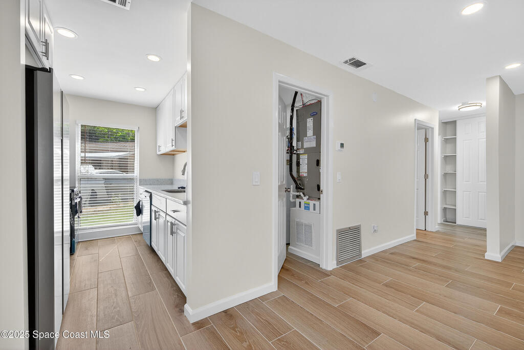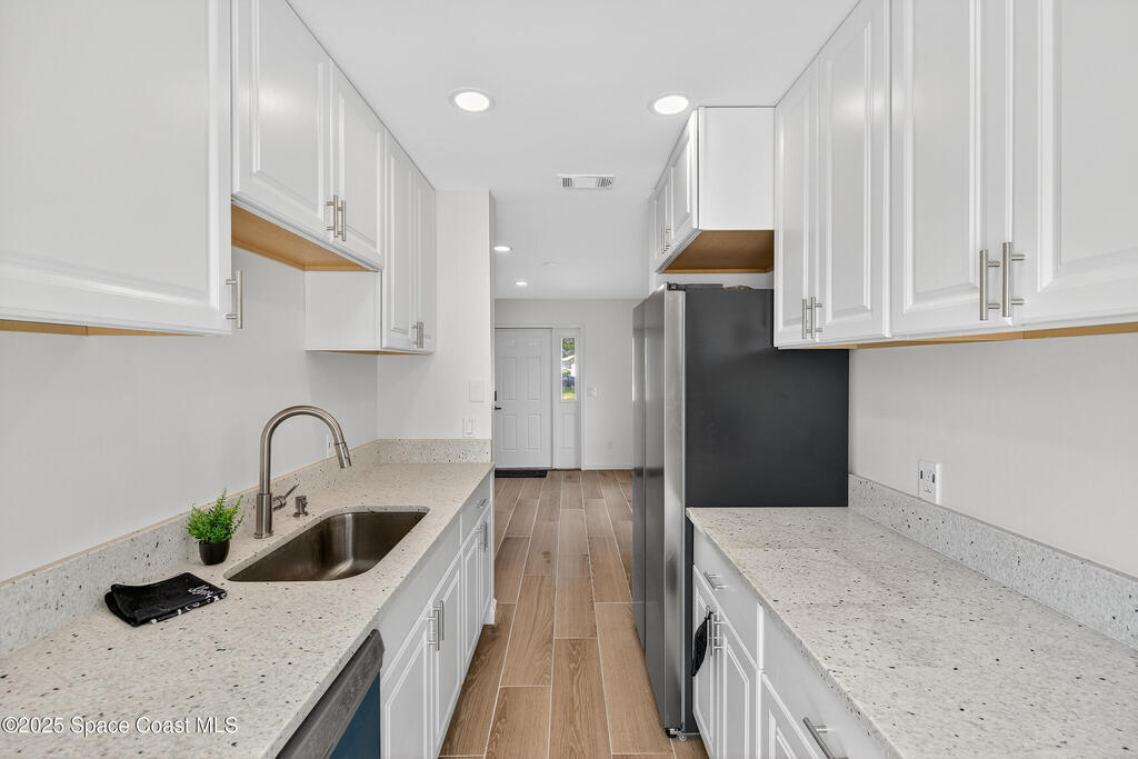 New Price improvement for this stunning 3 bed 2 bath home with a 1 car garage, situated on a private cul de sac road. This home features all brand new 2025 modern updates. Enjoy peace of mind with a brand new architectural shingle roof, hurricane impact windows, doors and a new 2024 HVAC system. Step inside all the natural light, new wood plank tile floors and baseboards throughout, updated granite stone kitchen with wood shaker cabinets, brand new stainless steel appliances. Primary bedroom features a large closet and a gorgeous ensuite modern shower bathroom. Ample size guest bedrooms, updated gust bath with soak in tub, niche and new lighting throughout. Bonus room that can easily be used as an office or a den. Home sits on a elevated corner lot, no flood zone and not on a through street for added privacy. Just minutes from the beach, easy access to I-95, shops, dining hospitals and schools. Easy to show, so book your showing today!