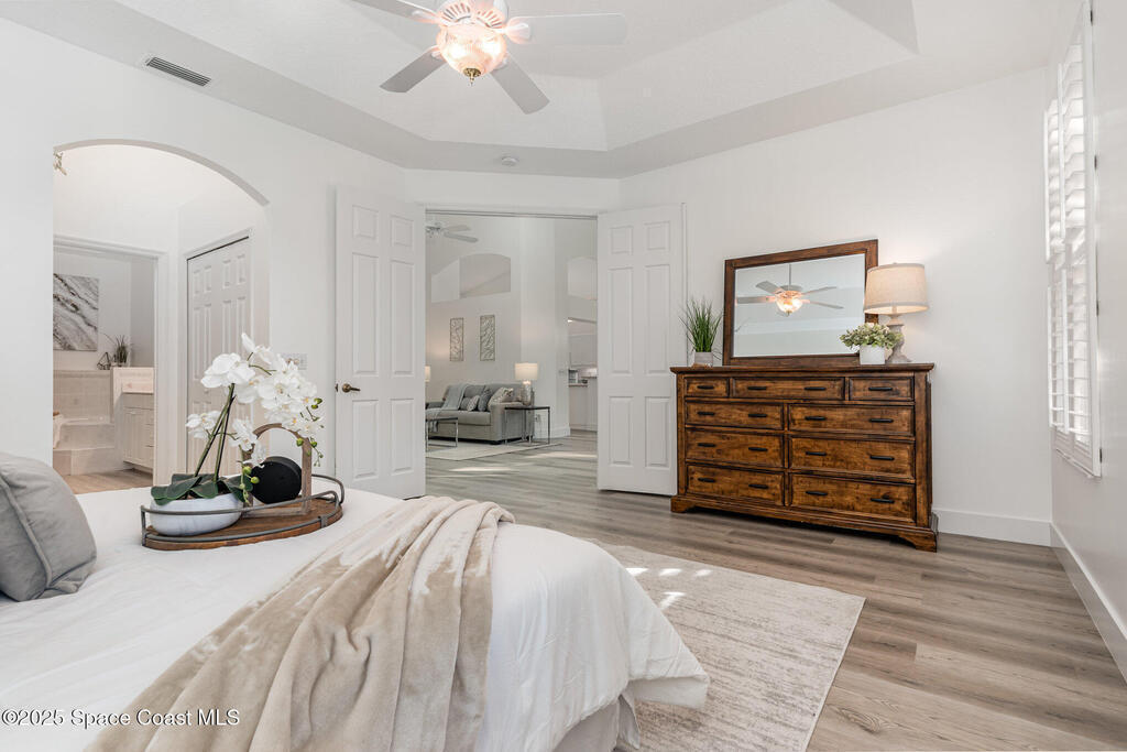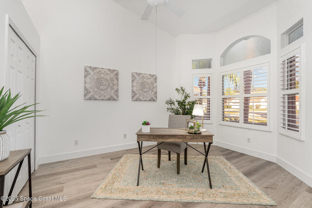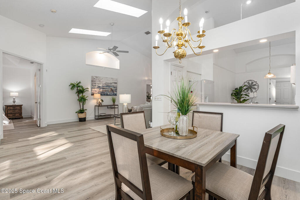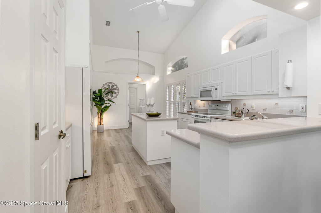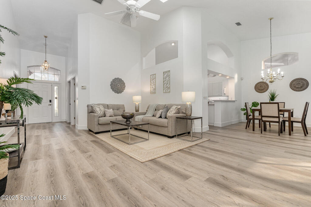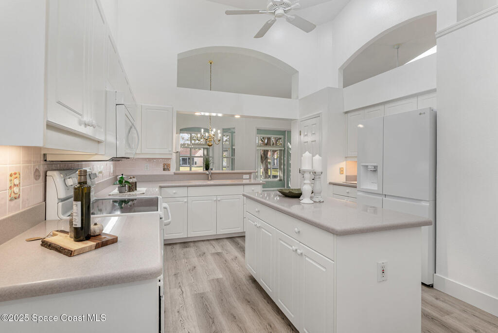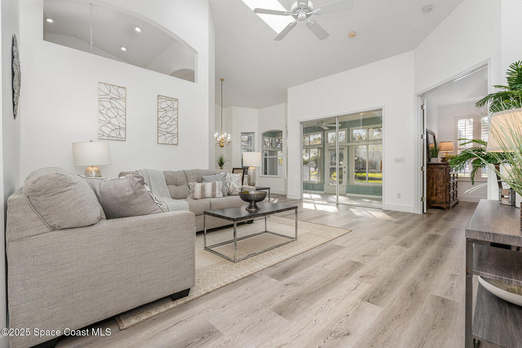 Welcome to this 3-bedroom, 2-bath villa in the sought-after gated community of Renaissance Pointe. This move-in ready home offers peaceful lake views filled with wildlife, providing the perfect setting for relaxation and serenity. Enjoy Florida living at its best in the enclosed Florida room, ideal for entertaining or quiet mornings. Inside, you'll find freshly painted walls and ceilings, brand new luxury vinyl plank flooring, and vaulted ceilings that enhance the spacious feel. Situated in a cul-de-sac, the home also features a newer barrel tile roof (2024) for timeless appeal and durability. The open, low-maintenance layout offers comfort and convenience. Community amenities include a sparkling pool, private roads, and beautifully maintained grounds. The HOA covers lawn care, irrigation, pest control, exterior painting, roof repairs, and gate security. Conveniently located near shopping, dining, I-95, and US1