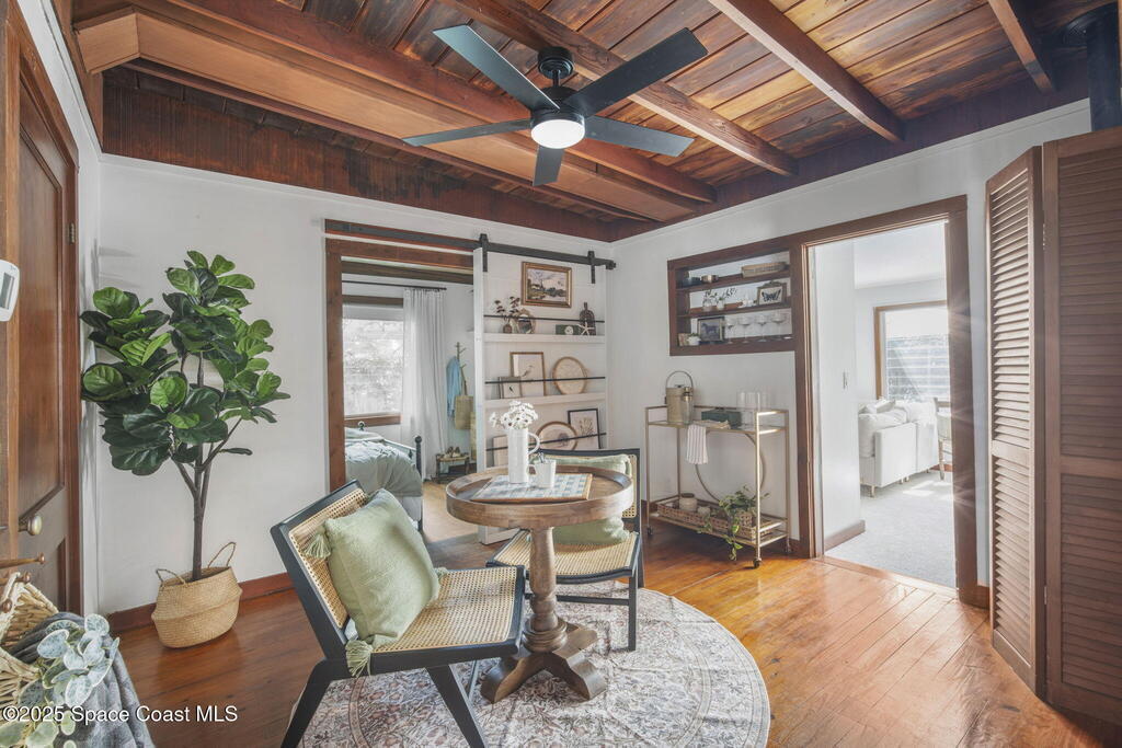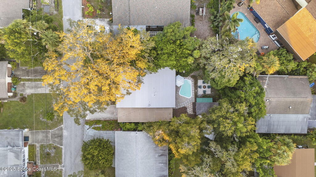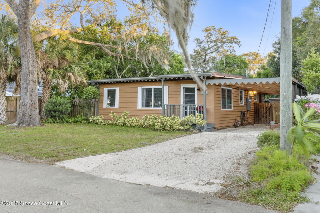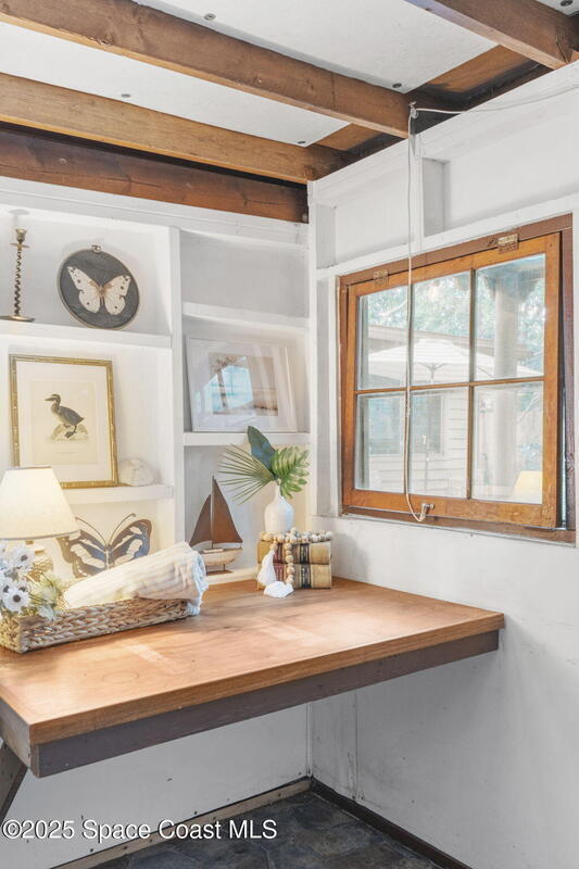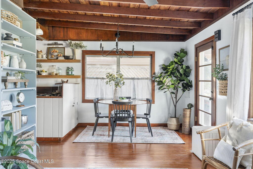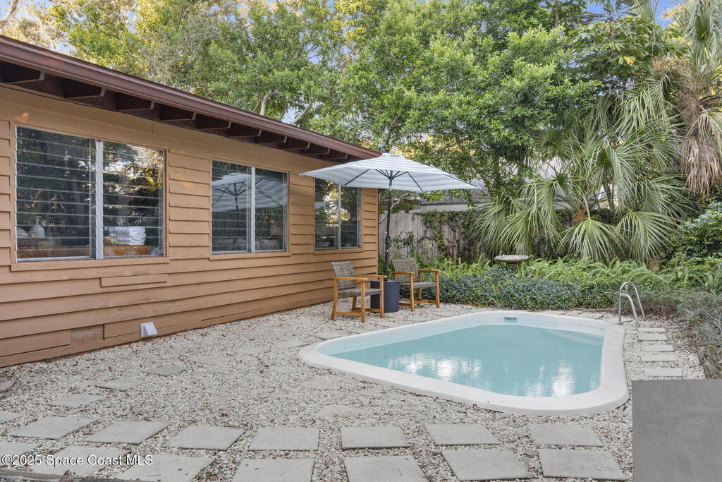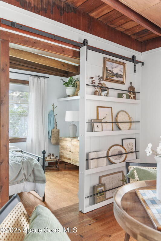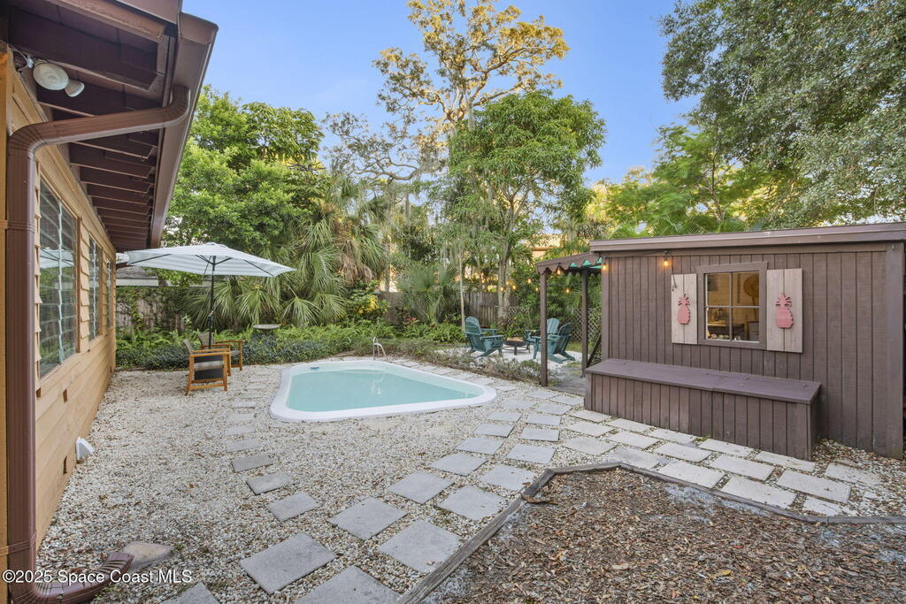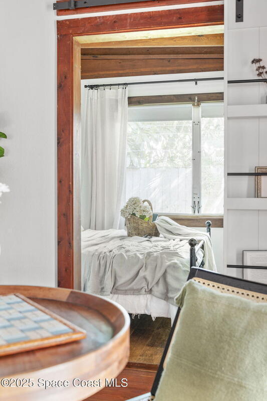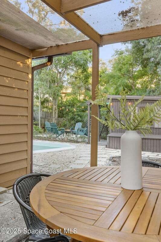 Rare opportunity to purchase a charming cottage with a pool in the most desirable location in the Eau Gallie Arts District. Step into a storybook retreat where historic character meets Florida vacation. You'll find many leather-bound books and it smells of rich cedar. This thoughtfully updated cottage captures the timeless feel of a bed and breakfast--making it an ideal opportunity for investors seeking a charming Airbnb or short-term rental in the thriving EGAD. Every detail tells a story with pristine original hardwood floors, cedar ceilings, doors and thoughtfully curated design details. Inside, you'll find two cozy living spaces, two inviting bedrooms including a primary suite with lounge and full bathroom. The family room opens to a pool bath, exceptional indoor laundry, and a private backyard oasis. Surrounded by lush Florida landscaping--towering oaks, swaying palms, and vibrant ferns--this outdoor space invites slow mornings and starlit evenings with its pool, dining area
