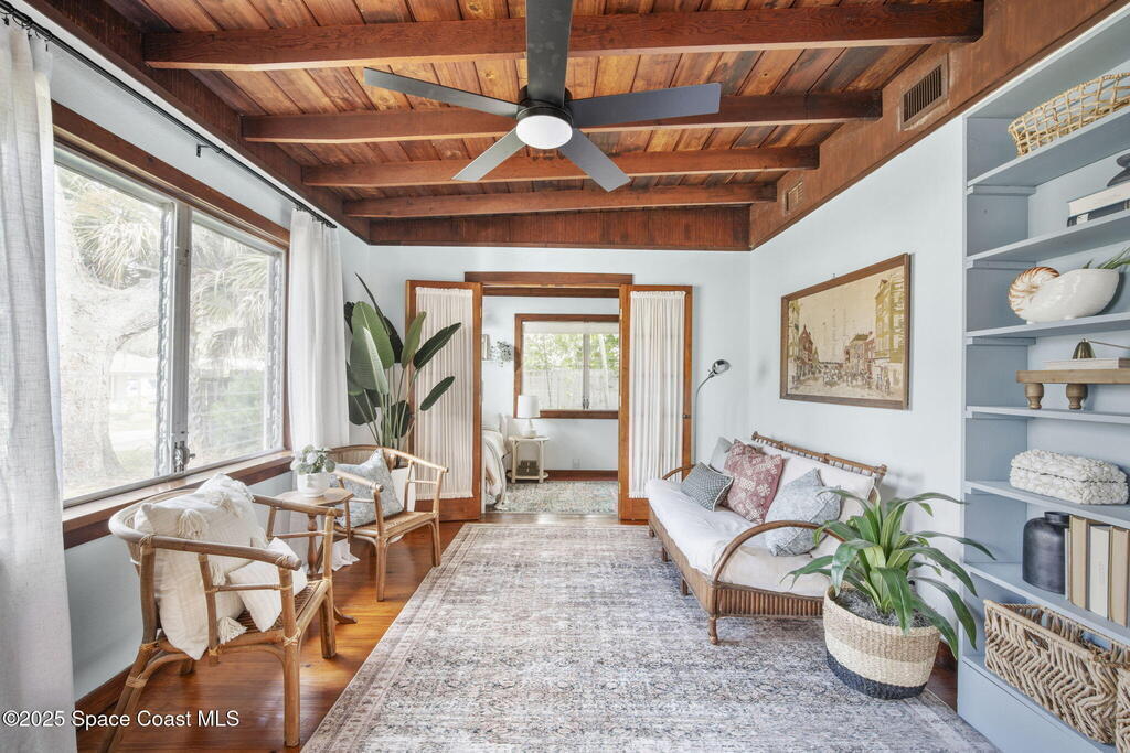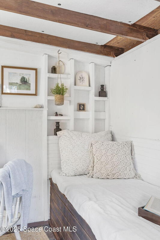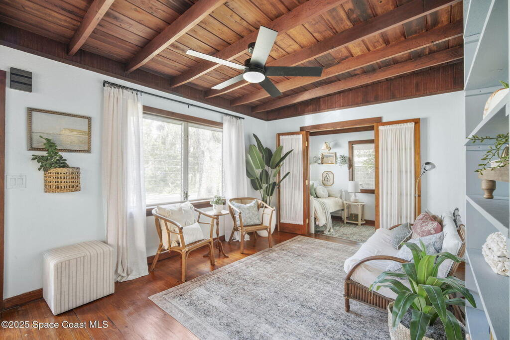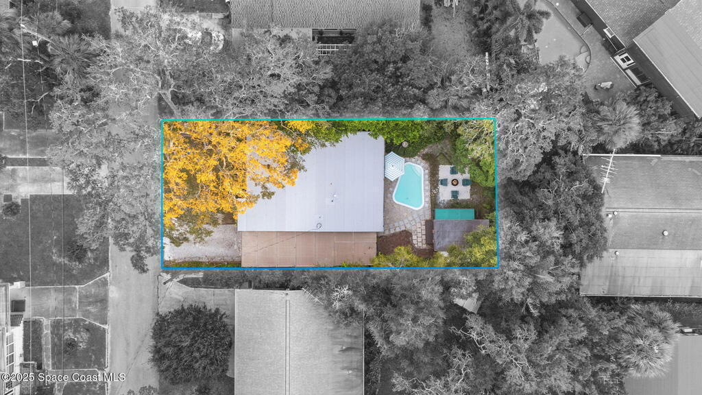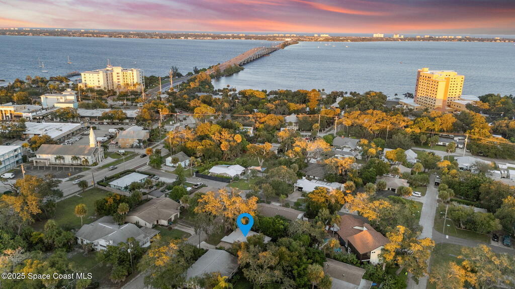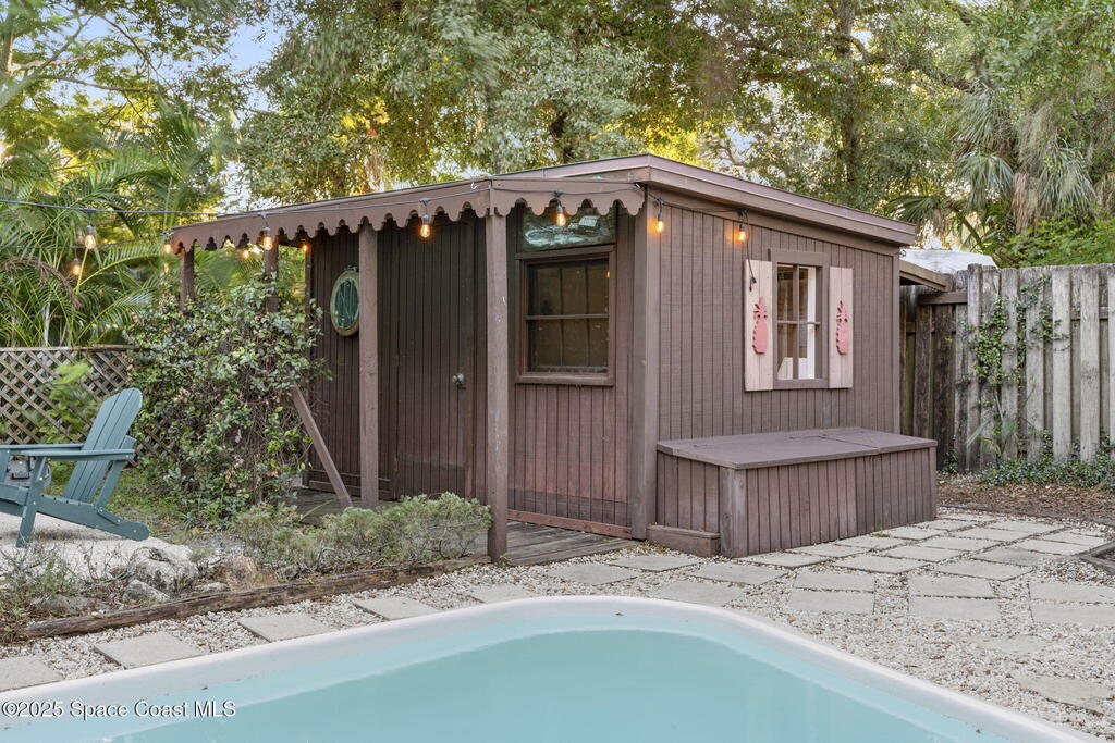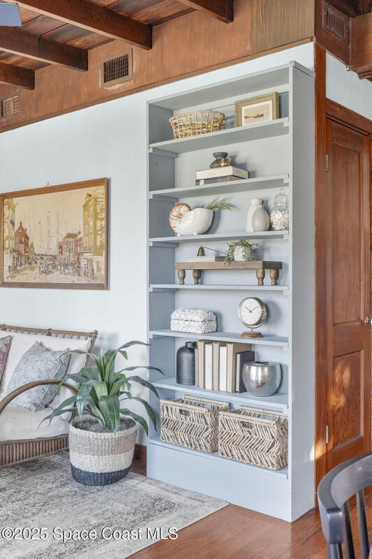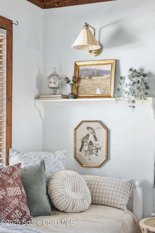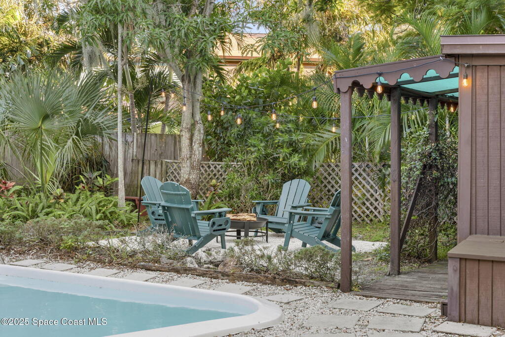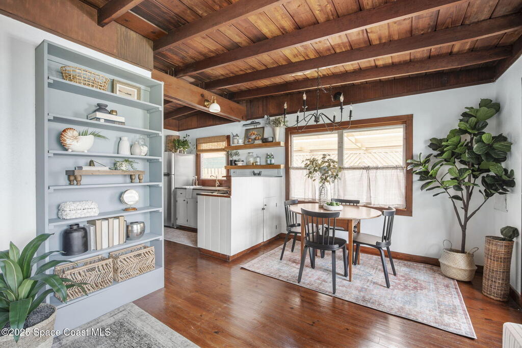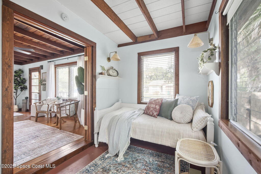 Rare opportunity to purchase a charming cottage with a pool in the most desirable location in the Eau Gallie Arts District. Step into a storybook retreat where historic character meets Florida vacation. You'll find many leather-bound books and it smells of rich cedar. This thoughtfully updated cottage captures the timeless feel of a bed and breakfast--making it an ideal opportunity for investors seeking a charming Airbnb or short-term rental in the thriving EGAD. Every detail tells a story with pristine original hardwood floors, cedar ceilings, doors and thoughtfully curated design details. Inside, you'll find two cozy living spaces, two inviting bedrooms including a primary suite with lounge and full bathroom. The family room opens to a pool bath, exceptional indoor laundry, and a private backyard oasis. Surrounded by lush Florida landscaping--towering oaks, swaying palms, and vibrant ferns--this outdoor space invites slow mornings and starlit evenings with its pool, dining area