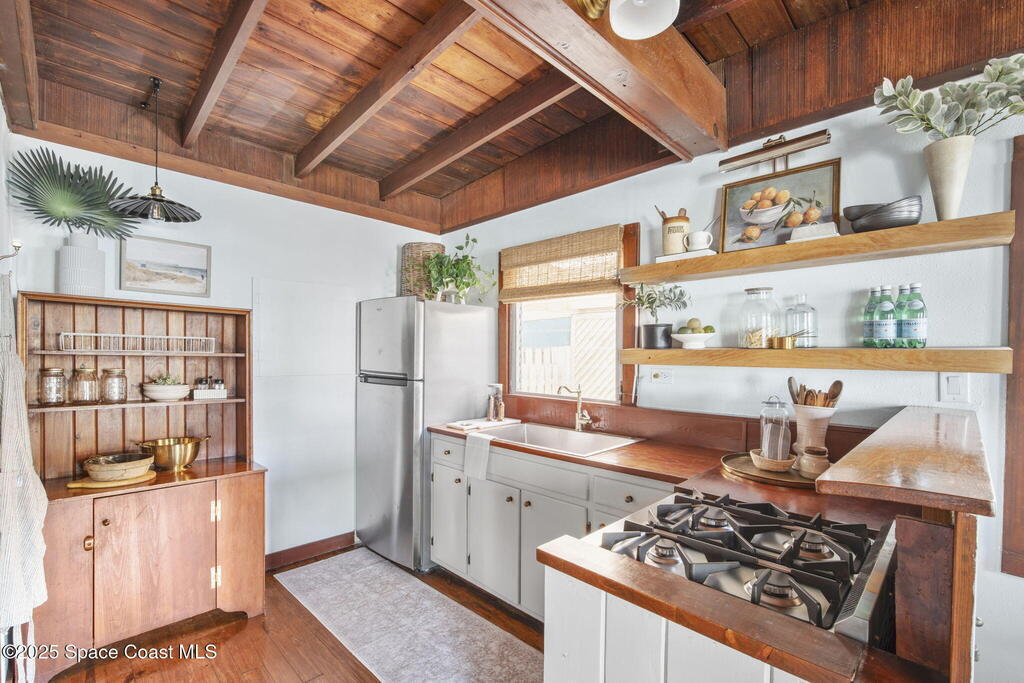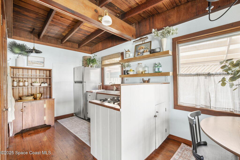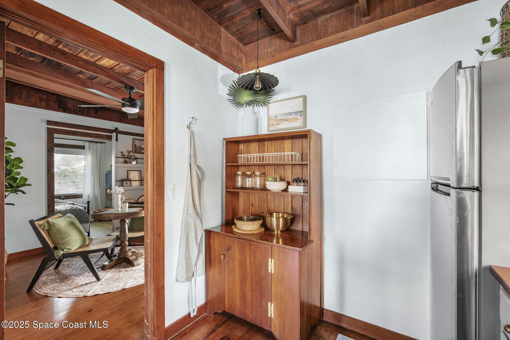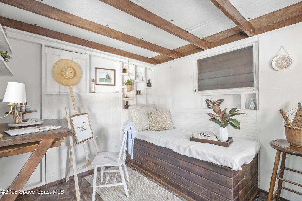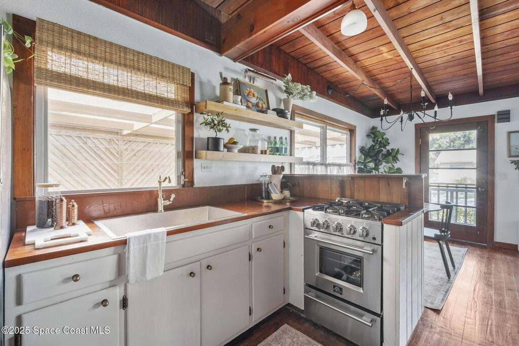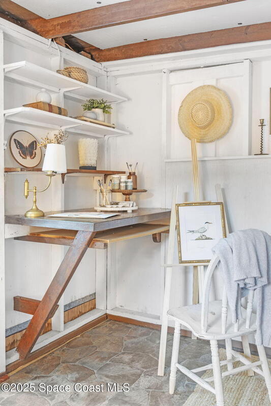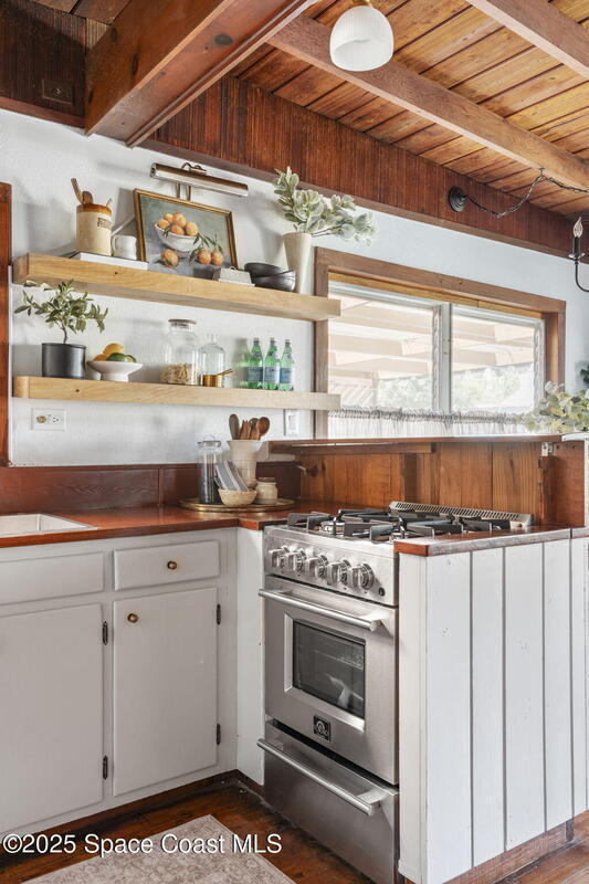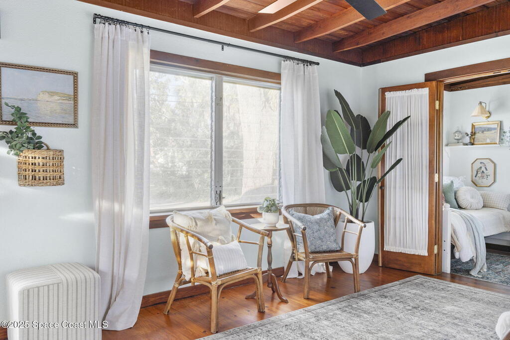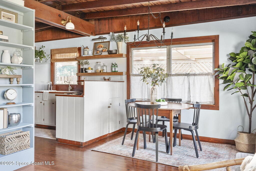 Rare opportunity to purchase a charming cottage with a pool in the most desirable location in the Eau Gallie Arts District. Step into a storybook retreat where historic character meets Florida vacation. You'll find many leather-bound books and it smells of rich cedar. This thoughtfully updated cottage captures the timeless feel of a bed and breakfast--making it an ideal opportunity for investors seeking a charming Airbnb or short-term rental in the thriving EGAD. Every detail tells a story with pristine original hardwood floors, cedar ceilings, doors and thoughtfully curated design details. Inside, you'll find two cozy living spaces, two inviting bedrooms including a primary suite with lounge and full bathroom. The family room opens to a pool bath, exceptional indoor laundry, and a private backyard oasis. Surrounded by lush Florida landscaping--towering oaks, swaying palms, and vibrant ferns--this outdoor space invites slow mornings and starlit evenings with its pool, dining area