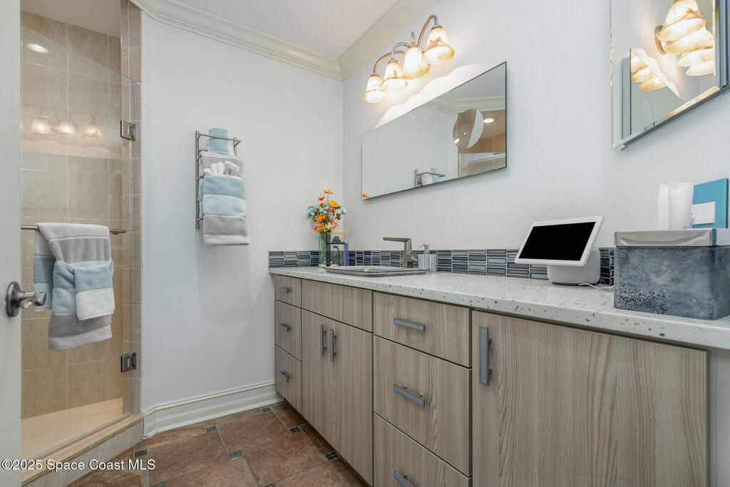 Luxury Riverfront Condo - Steps from Cocoa Village! One-of-a-kind 2,600+ sq. ft. riverfront condo just steps from Cocoa Village's shops, restaurants, and events. Beautifully updated and move-in ready!$120K+ in upgrades including: Renovated primary and guest bathrooms New porcelain tile in the primary suite Updated kitchen with soft-close cabinetry, quartz countertops, dual composite sink, and custom Rubinet faucet Wraparound patio with Armor Screen automated hurricane protectionChef's Kitchen & Entertaining Spaces:Spacious prep island with secondary oven and wine fridge, plus serving/bar counter. Large laundry room/butler's pantry with second dishwasher, deep sink, refrigerator, and abundant cabinet space.Primary Suite Retreat:Built-in workspace, dual walk-in closets, and spa-style bath with double vanities, Jacuzzi soaking tub, and rainforest shower.Modern design, stunning river views, and a prime location--this condo truly has it all!