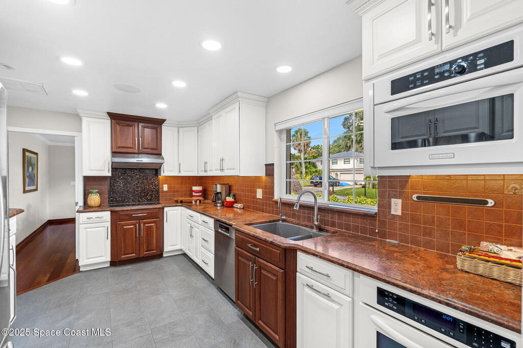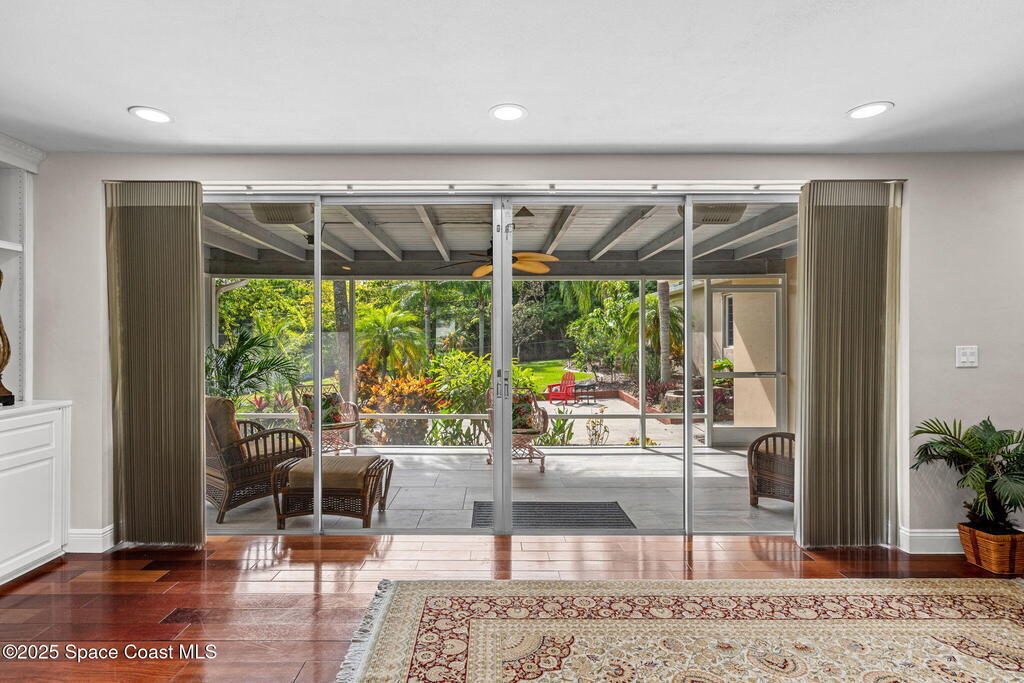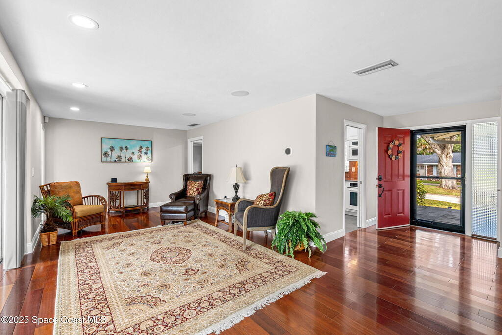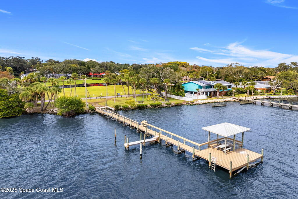 Experience the perfect blend of indoor & outdoor living in this standout single-story 4 bed, 3 bath Ranch w/ RARE detached 3 CAR GARAGE in the highly desirable Twin Lakes Subdivision off Indian River Dr! Set on an oversized 0.34 acre lot w/ mature trees, this property offers a peaceful setting w/ quick access to Indian River Dr, Cocoa Village, Space Center, SR 528 & I-95. Home features a large family rm w/ oversized pocket sliders leading to elevated screen porch, upgraded kitchen w/ granite & stainless appliances, bright primary bedroom w/ walk-in closet, Fully Equipped Media Rm w/ 5 speakers & 113'' screen, Detached apartment/office & garage w/ coated floor, EV charging & central vac. Recent upgrades: New Roof (2024), HVAC (2021), New Front Septic (2019), both septics pumped (2024), water heater (2019), flooring & interior paint (2025), new lights & fans (2025), aluminum screen porch (2025), irrigation/tree trimming (2025). Community park features boat ramp dock & slips.