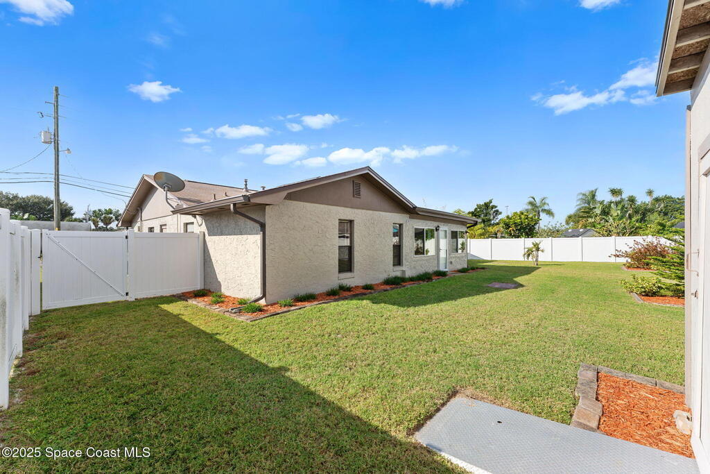 Beautifully maintained 3 bed, 2 bath move-in ready home on sought after Newfound Harbor Dr! This property impresses from the start w/ fresh landscaping, tropical palms, & great curb appeal! Thoughtfully updated w/ new roof (2019), new A/C (2023), full PEX repipe for water lines, new vinyl fenced backyard (2024), newer dishwasher & disposal, and updated front & rear doors. Inside, the spacious primary suite offers a cozy double sided gas fireplace shared w/ the family room featuring a lovely stone facade, perfect for relaxing or entertaining. Kitchen features newer cabinets, stainless appliances & decorative tile backsplash. Enjoy a large, fully fenced backyard offering plenty of privacy, room for a pool & a shed with a newer roof. Additional highlights include a 2 car garage w/ newer opener, washer & dryer included, and no HOA! Ideally located just minutes from Port Canaveral, Kennedy Space Center & Cocoa Beach. A wonderful blend of comfort, style & convenience.