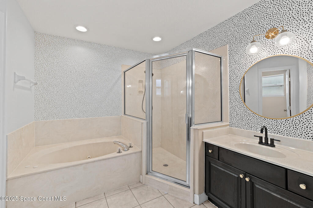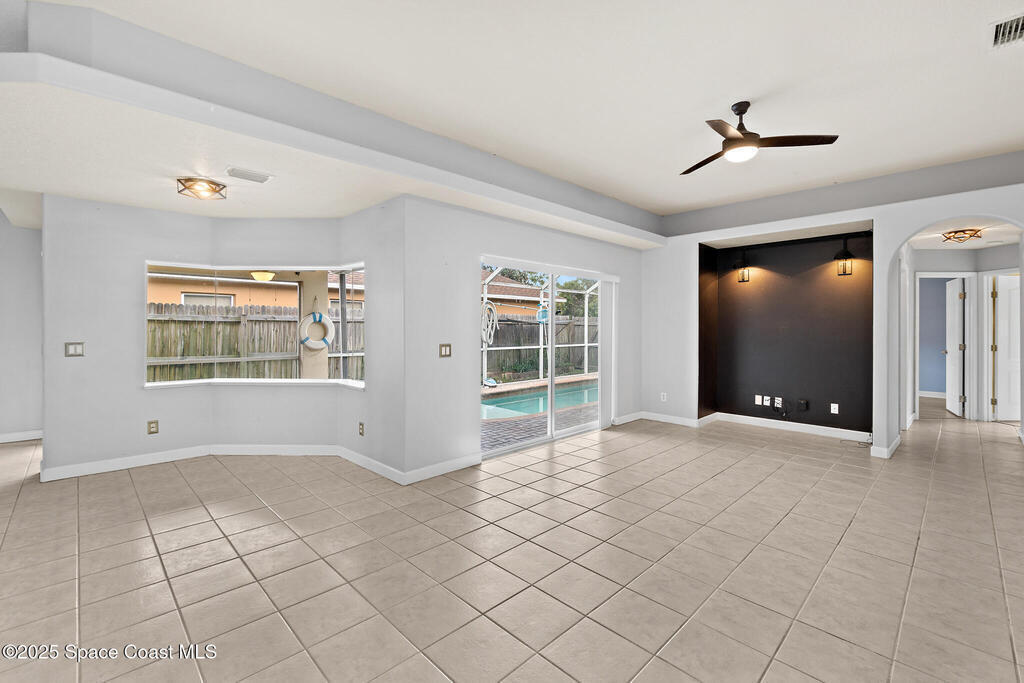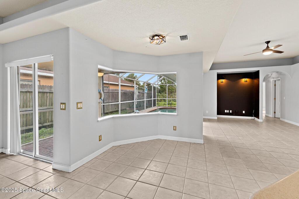 Viera East Pool Home 5-bed, 2-bath on a quiet cul-de-sac in the desirable Somerville neighborhood. Enjoy over 2,000 sqft of open-concept living with a split-bedroom floor plan and tile floors throughout the main areas. The updated kitchen features Corian countertops, newer stainless appliances, a walk-in pantry, breakfast bar, and a convenient laundry room. The spacious living and dining areas have nook areas for casual dining or office space, with sliders to the back patio. The primary suite includes his & hers closets, a jetted tub, separate shower, and dual vanities. A bonus room with French doors and closet makes an ideal den or 5th bedroom. Embrace resort-style Florida living with your private screened pool, paver patio, and serene preserve views in the backyard. This home blends style, comfort, and prime location; only a half-mile from top-rated Ralph Williams Elementary and Clubhouse Park, and just 4 miles from The Avenue Viera shopping & dining.