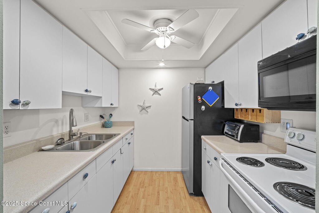 Beachside living at its best! Nestled in the heart of Cape Canaveral, this charming 55+ condo community offers the perfect blend of coastal comfort and convenience. Enjoy close proximity to Port Canaveral, the Atlantic Ocean, and the brand-new community center with endless local activities. This well-maintained, quiet complex features a sparkling pool and beautifully kept grounds--ready for you to cal home. The desirable corner end-unit features hurricane-rated windows throughout and a newer A/C for peace of mind. Inside, the open-flow layout includes a spacious family room, a functional galley kitchen, and an oversized bedroom with plenty of natural light. Whether you're seeking a year-round residence or a beachside retreat, this move-in ready condo delivers the Florida lifestyle you've been dreaming of!