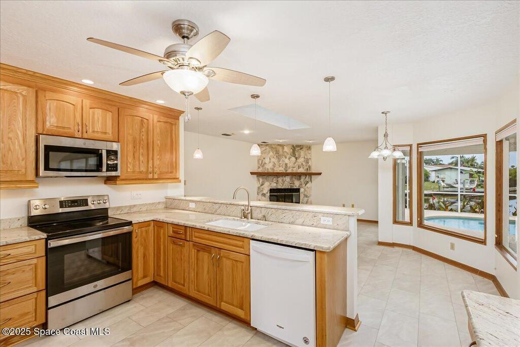 You won't believe your luck! Spacious, affordable, 4 Bedroom home on an open canal with sunset views!!! This is true Florida living at its BEST! Open the front door to this open-concept living with views over-looking the in-ground pool, covered and screened porch and wide Canal adjacent to Ulamay conservation area! Your family will love this split bedroom home with a newish kitchen, newer roof (2022), new appliances, granite counters, fireplace, and nice sized yard! This home has also been freshly painted for a beautiful, clean look!You are so close to Port Canaveral, Orlando Airport, shopping, restaurants and the beaches! Put this one on your list to see today! You'll be glad you did!3-D Matterport floorplan coming Nov. 17th. Go to Homes.com to view.