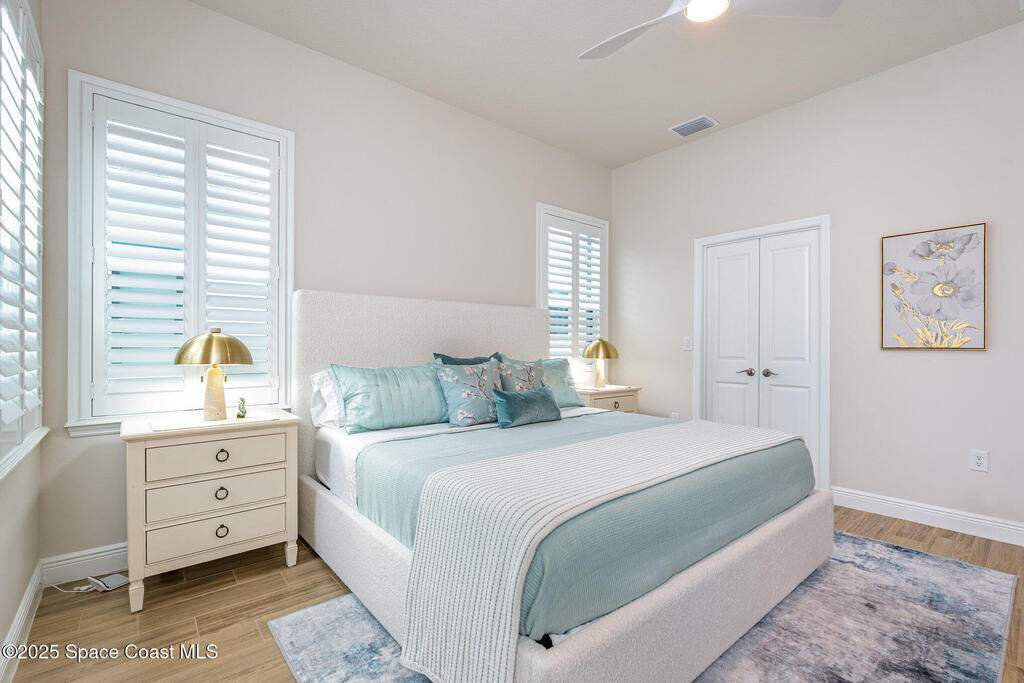 Experience the best of modern multi-generational living in this single-story 2024-built 4-bedroom, 3-bath home in sought-after Reeling Park, West Viera. Designed for today's lifestyle, the open-concept In-Law Floor Plan features elegant tile flooring throughout, a spacious kitchen with quartz countertops, extra pantry cabinetry, and an expansive island perfect for entertaining. Enjoy stylish touches including plantation shutters and luxury finishes. The primary suite and guest accommodations provide flexibility for extended family or guests. Outdoor living shines with front and rear screened porches, an expansive paver patio, and a fenced yard professionally landscaped for privacy, all in a peaceful park setting. Ideally located near top-rated schools, fine dining, shopping, and the resort-style Addison Village Club. You're less than 20 minutes to the beach and minutes from championship golf courses. Sellers offering up to $5,000 in closing cost credits with accepted offer.