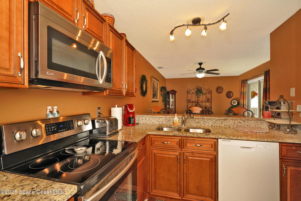 Check out this beautiful 3/2, one of the nicest, well-kept units you will see located close to everything at Malibu Villas! It features a NEW ROOF, freshly painted exterior, NEW water heater, NEWER appliances & NEW carpet in the master. It is turn-key ready! The kitchen boasts granite tops, soft-close wood cabinets, stainless steel appliances & breakfast bar. The master is downstairs along with a formal living, dining & full bathroom. The sliders open up to your own private courtyard with a storage closet - there's also extra storage under the staircase. Upstairs you'll find two more guest rooms and another full bath. The HOA covers roof replacement, exterior maintenance, pest control, landscaping, cable, wifi & heated COMMUNITY POOL w/clubhouse. Right before dark, walk the path around a beautiful lake for stunning sunsets! Make this your winter home, retirement, or rental property. At this low price, you are sure to save money on ALL this area has to offer!