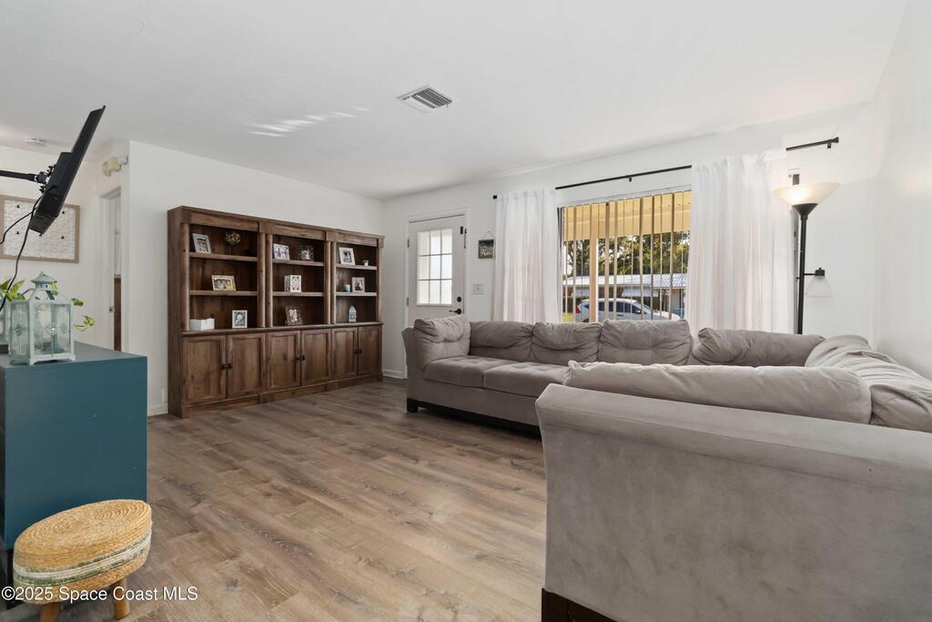 Welcome to this beautifully updated home tucked away in a quiet Titusville neighborhood. This move-in ready property offers a flexible layout with both a front living room and a rear sitting area, perfect for entertaining or relaxing. Recent updates include interior paint, new ceiling fans, upgraded lighting and fixtures, and laminate and tile flooring throughout. The kitchen features a walk-in pantry, and the spacious laundry room provides plenty of storage and functionality. Major improvements include a new roof and hot water heater (2021), along with upgraded electrical outlets and plumbing. The outdoor areas feature a full irrigation system, new well pump, fresh sod, and an exterior storage shed. Enjoy a peaceful setting with modern updates already completed--just move in and start enjoying your new home!