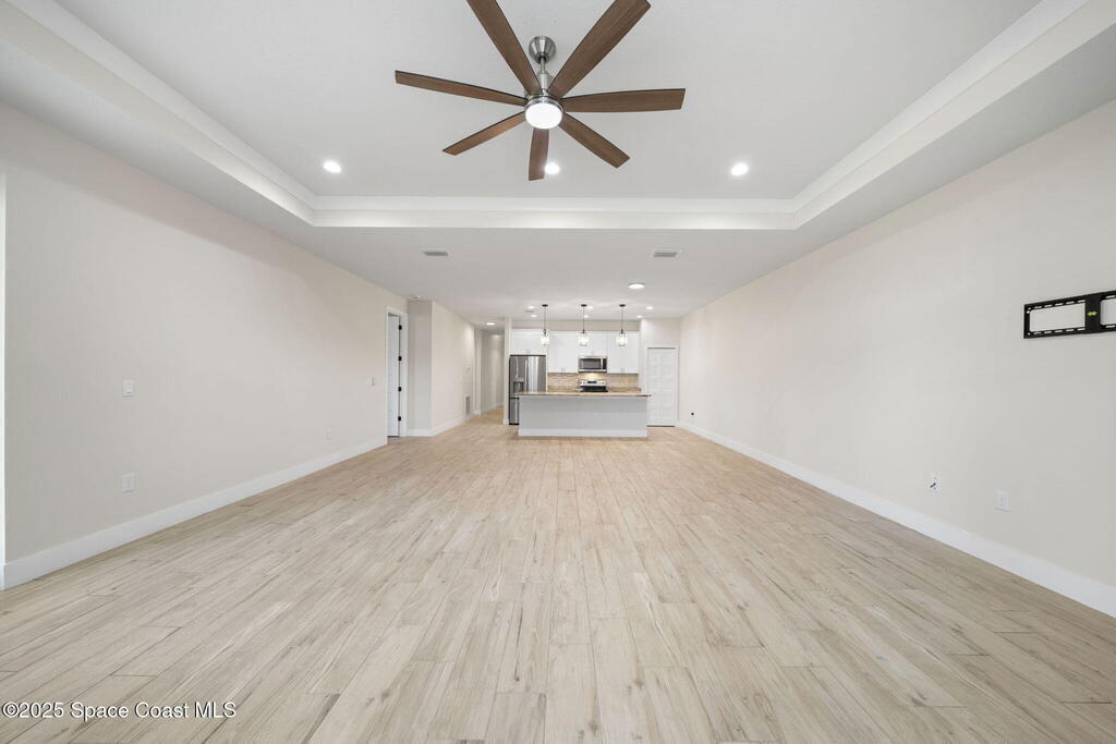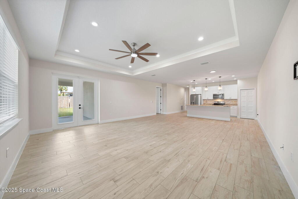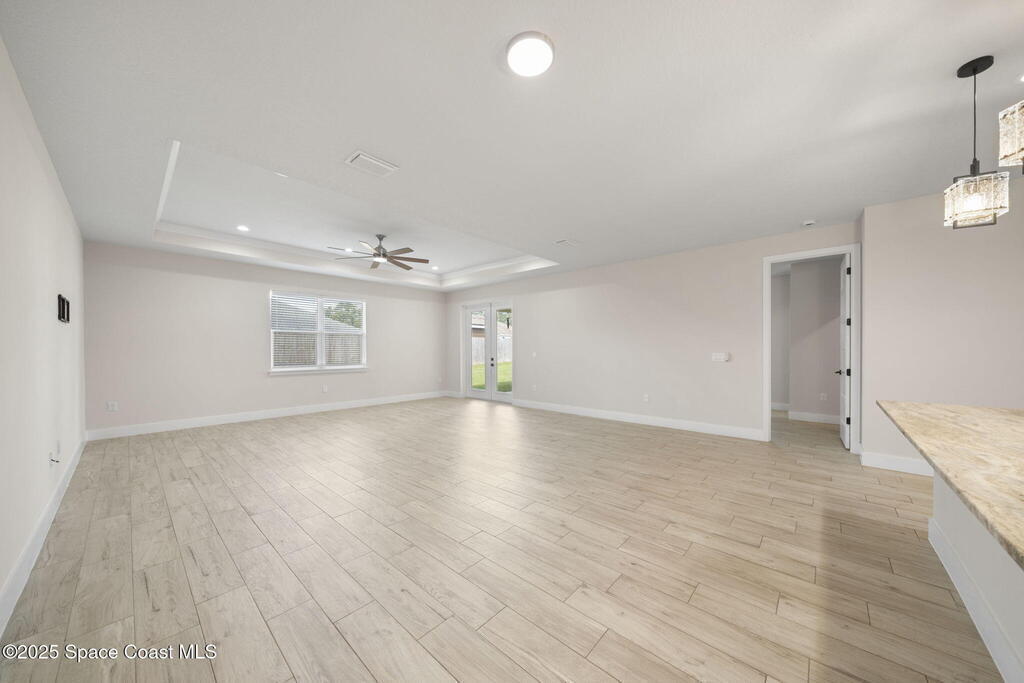 2024 Build 4 bedroom 2 bath home for rent in Northwest Palm Bay. Tile flooring throughout, open floor plan with vaulted ceilings. Spacious kitchen with stainless steel appliances and granite countertops. Covered rear patio, large fenced backyard and three car garage. Great location, close to shopping and restaurants. Lawn care included in rent.