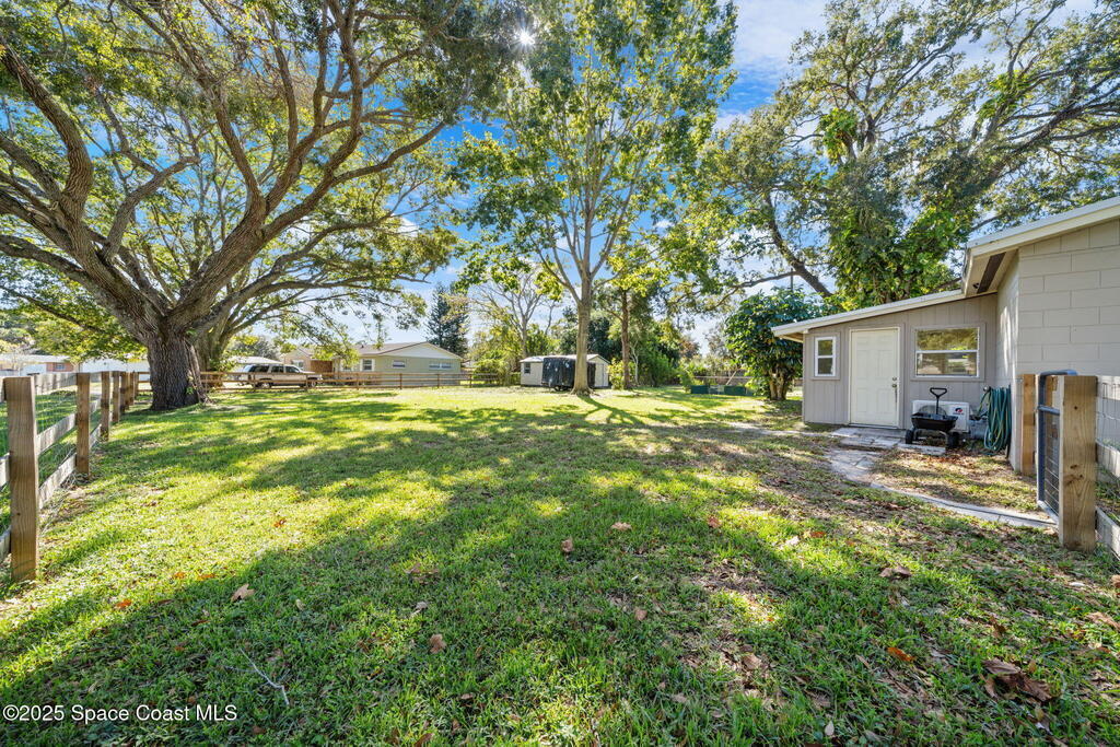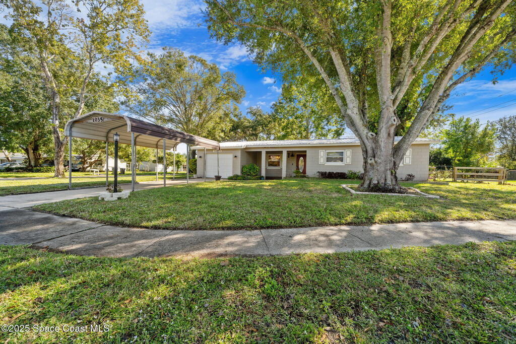 Great 3 bedroom 2 bath home in Titusville! Welcome to this solid concrete block home on a corner lot in a quiet cul-de-sac. Enjoy peace of mind with a metal roof and modern updates including granite countertops and luxury vinyl flooring. The large fenced backyard offers plenty of space to relax and play, complete with a storage shed and chicken coop. No HOA means freedom to make this home your own! Conveniently located near Kennedy Space Center, SpaceX, Blue Origin, Port Canaveral and area beaches, this home is ideal for first-time buyers or anyone seeking comfort and convenience in a established neighborhood.