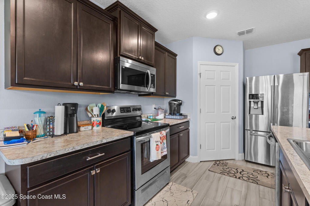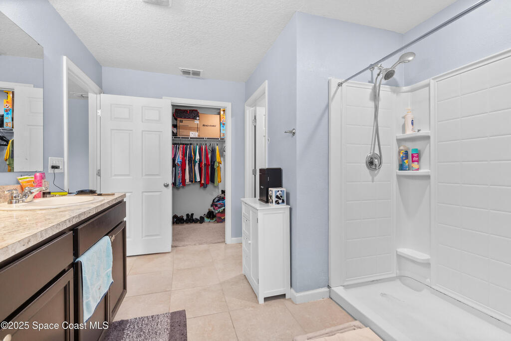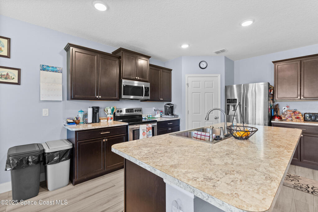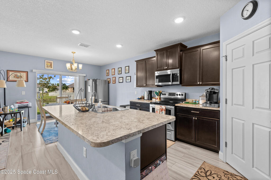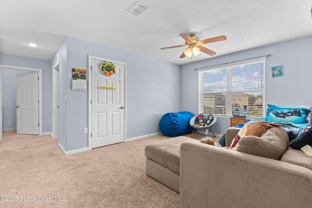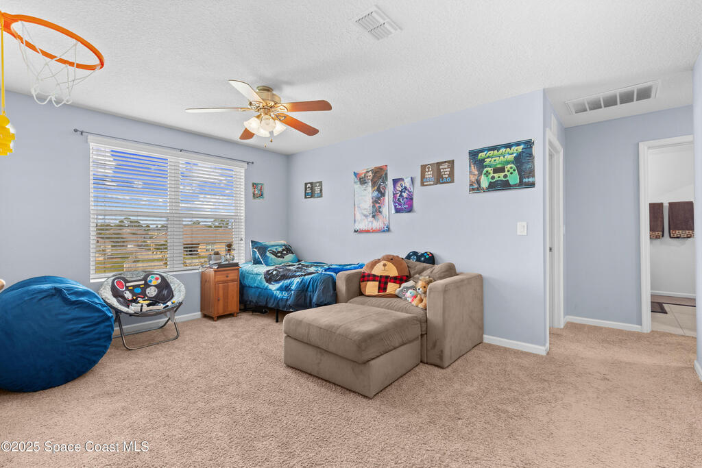 2018 build 5 bedroom, 3 bath home in the gated community of Brentwood Lakes. Downstairs bedroom and bath. Formal living area with separate family room open to kitchen and dining. Large kitchen with island and walk in pantry. No carpet in the living areas and stairway, bedrooms only. Covered entry and rear porch areas. Massive master suite with walk in shower, dual sinks and two walk in closets. Spacious loft area and 3 additional bedrooms.Upstairs bath also has dual sinks. Hurricane shutters. All appliances convey including washer and dryer (except the second refrigerator near the sliders in kitchen). HOA covers both cable and internet, along with community areas and gated entry.