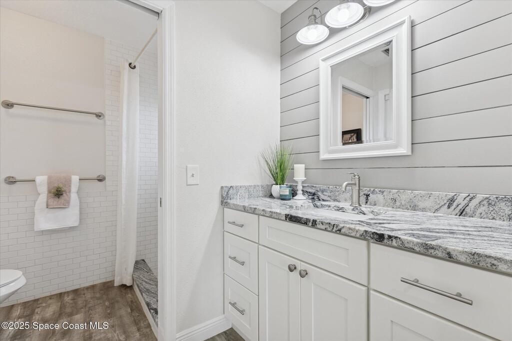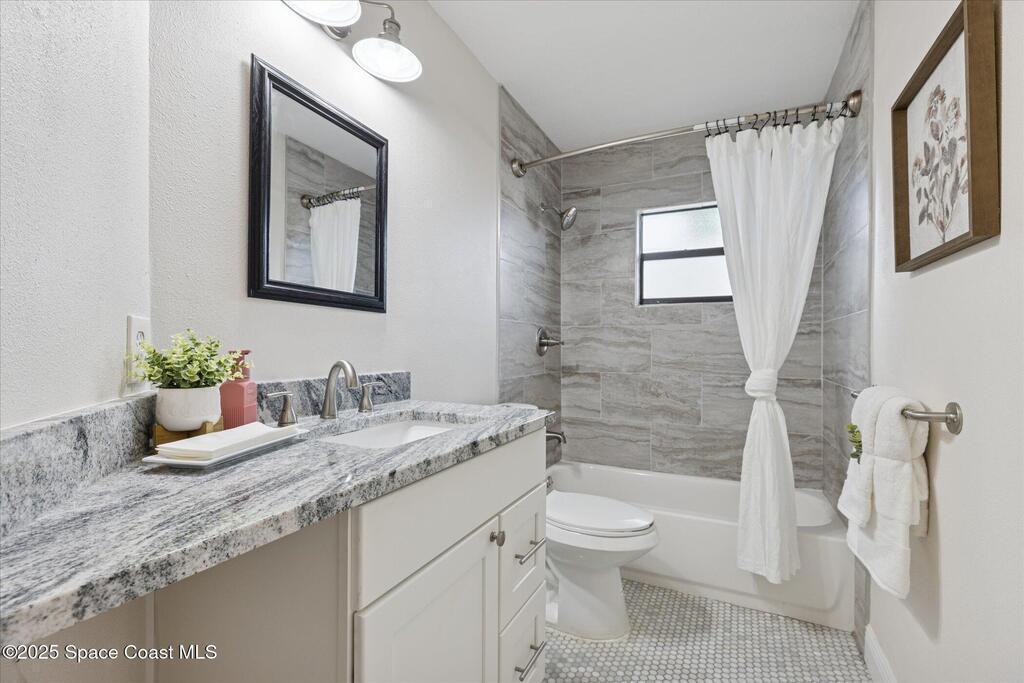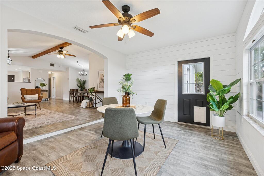 Remodeled move-in ready 3 bed, 2 bath home with a 2-car garage and an oversized driveway. Easy single-level living with a tropical palm tree-filled backyard. The updated kitchen offers granite counters, additional cabinetry for pantry items, stainless steel appliances, ample space to add your dream island and an open flow to the living and dining spaces. A flexible bonus room--perfect as a sunroom, den, office, or second living area--is wrapped in whitewashed shiplap and surrounded by windows for all-day natural light. Fill it with all the plants your heart desires! The wood beam spanning the living room ceiling adds another touch of character. Your primary bedroom has an ensuite with granite counters and a clean, classic subway tiled walk-in shower. Even the guest bathroom is remodeled! Step outside to a fully fenced backyard that shouts Florida lifestyle, ideal for relaxing or weekend cookouts. Love the outdoors? You're a short drive to Kiwanis Island and Kelly Park with public boat