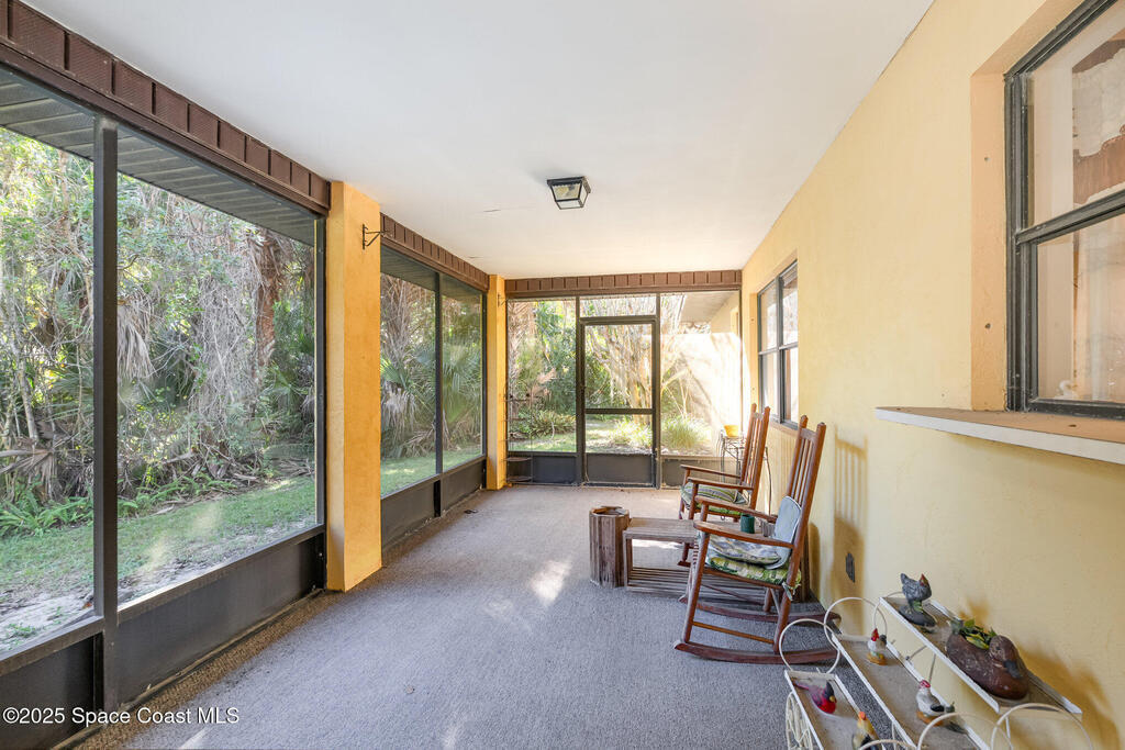 Stunning estate located in the highly sought-after Timbers West community, ready for you to bring your dream vision to life! This beautiful home sits on a 1-acre lot surrounded by mature trees and features a tranquil man-made pond. The spacious split-bedroom floor plan offers both comfort and functionality, with a vaulted ceiling in the main living and dining room. A second living room has sliding glass doors to a screened-in porch under trusses , perfect for relaxing or entertaining. Additional highlights include a 2022 roof, indoor laundry room, ceiling fans throughout, concrete block construction, an oversized two-car garage, and a storage shed with electricity. Conveniently located near dining, shopping, and entertainment, with easy access to I-95, US-1, and SR-520. Meticulously maintained by the original owner, this estate is awaiting you. Schedule your showing today!