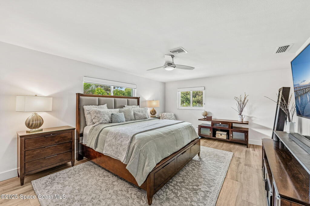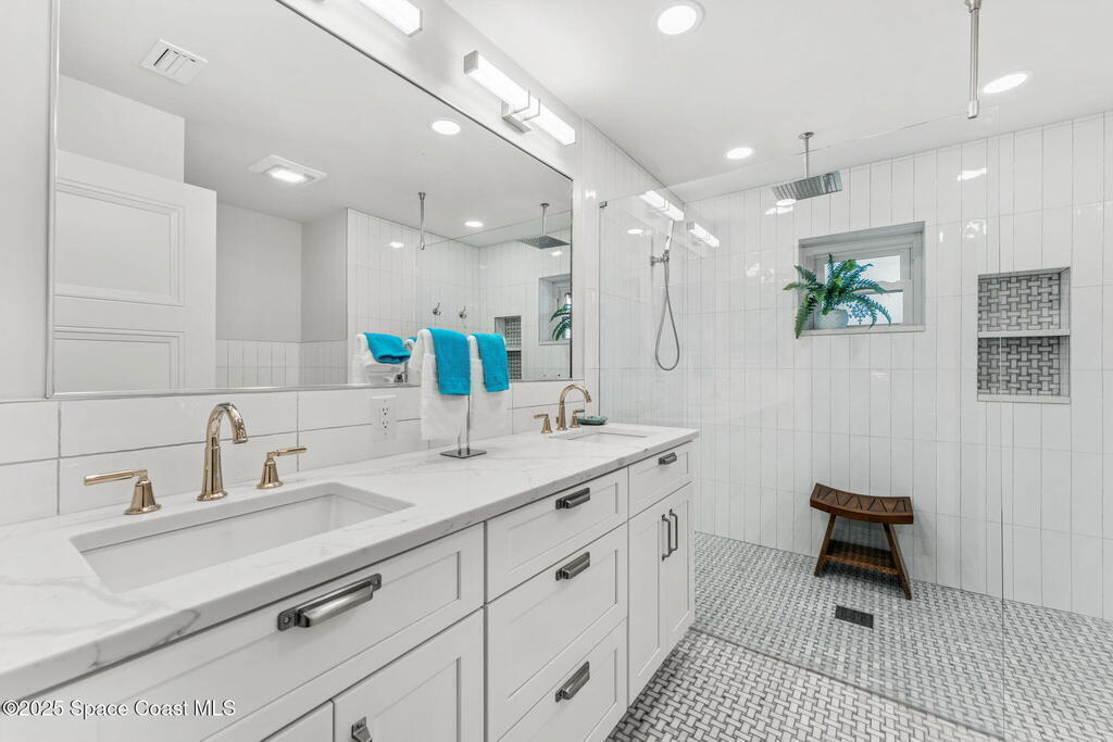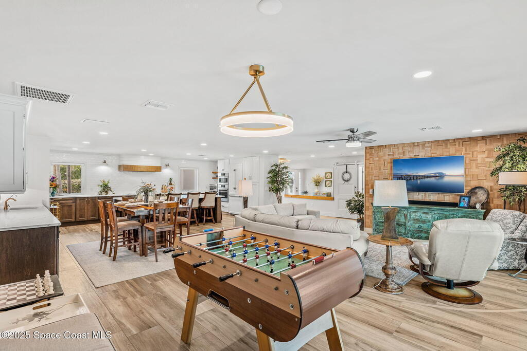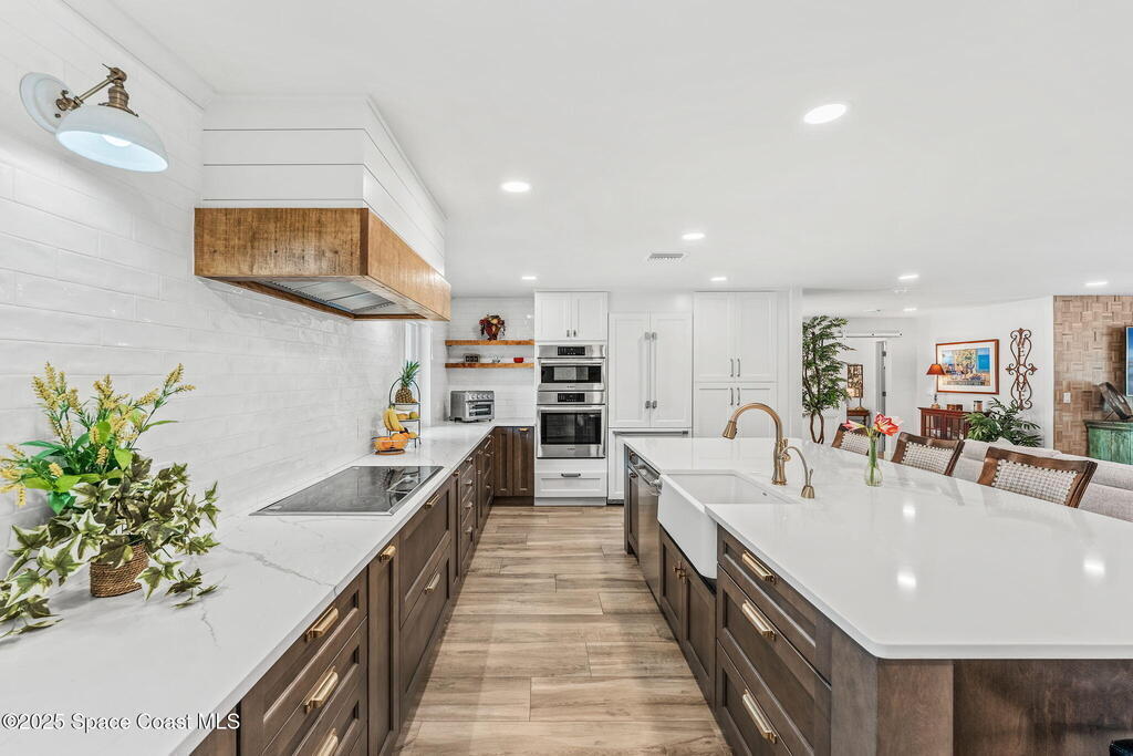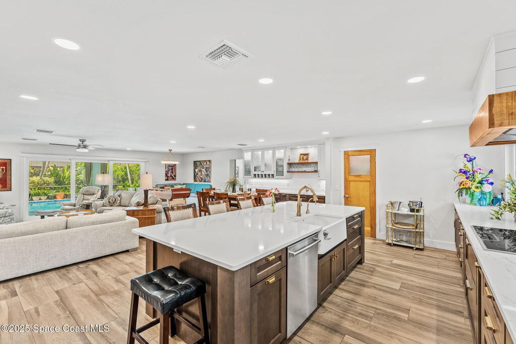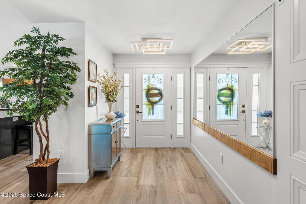 This fully reimagined 4-bed, 2.5-bath home delivers 2,562 sq ft of high-end living space, combining smart upgrades & standout style in a prime coastal location. A rare find, it includes a spacious 2-car garage plus an impressive 32'9'' x 16'4'' RV garage. Inside, extensive updates include--hurricane impact windows & doors, all sewer & supply lines replaced, new electric breaker box & significant electrical rewiring. The renovation features solid core interior doors, quartz countertops, custom birchwood kitchen details, top-tier SS appliances & porcelain wood-look tile throughout. The primary suite includes a walk-in closet and spa-like bath. Outside, enjoy a private resurfaced 15' x 30' pool, fully updated lanai & fenced yard with lush tropical landscaping. Incredible .40 Lot. Whole house generator. Located in the SOFA district within Ocean Trails HOA, w/ private deeded beach access just steps away, plus nearby parks, tennis courts, boat launch & more.