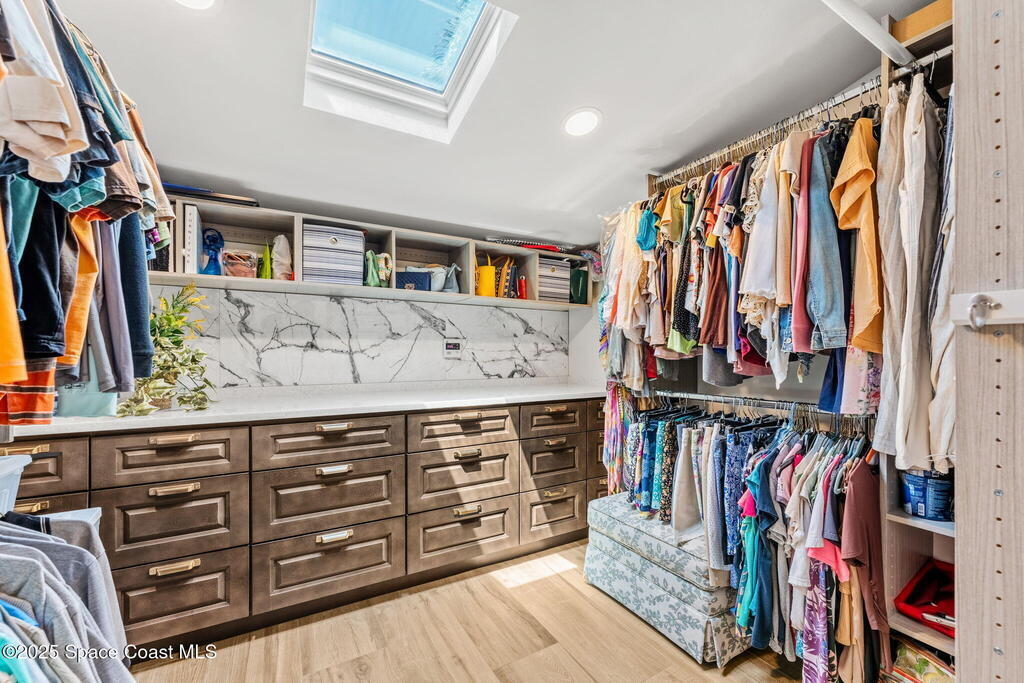 Breakfast Bar , Built-in Features , Ceiling Fan(s) , His and Hers Closets , Kitchen Island , Open Floorplan , Pantry , Primary Bathroom -Tub with Separate Shower , Primary Downstairs , Skylight(s) , Walk-In Closet(s) , Wet Bar