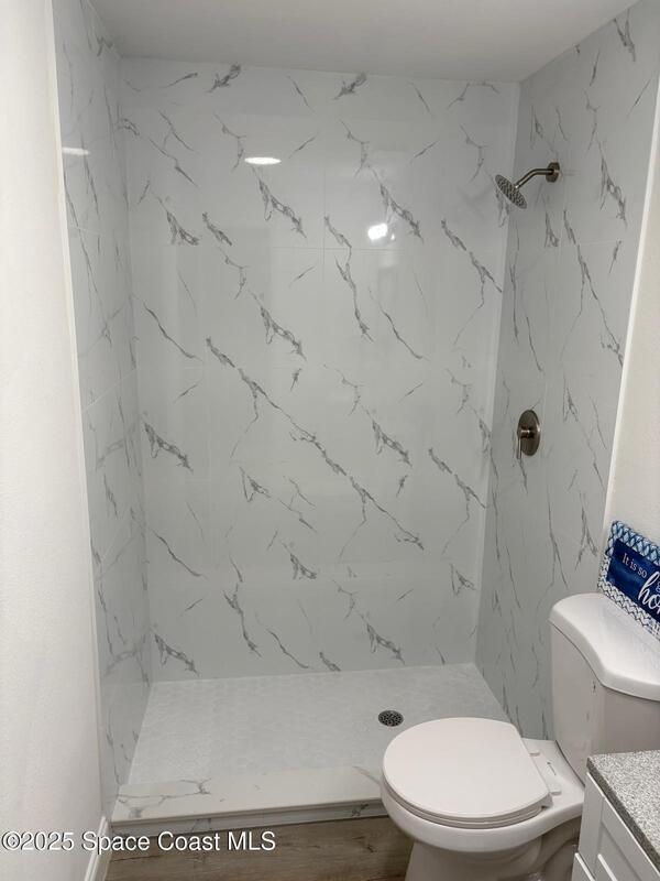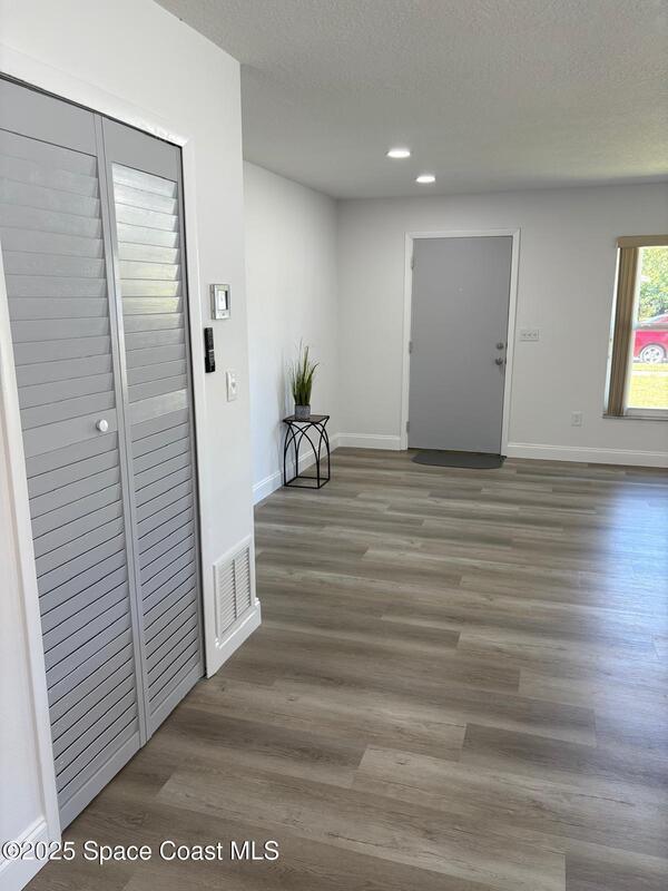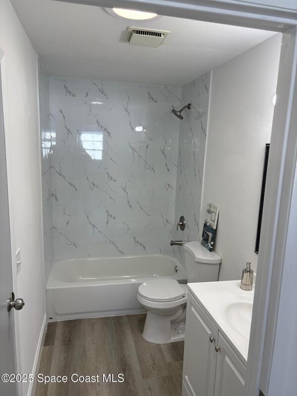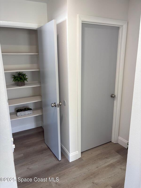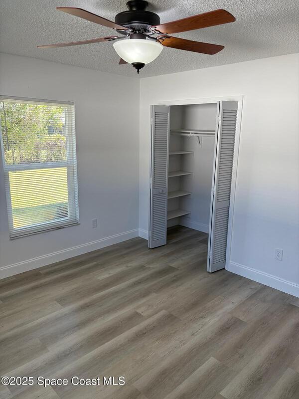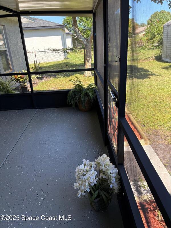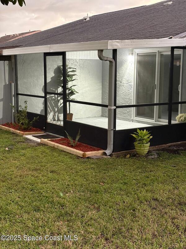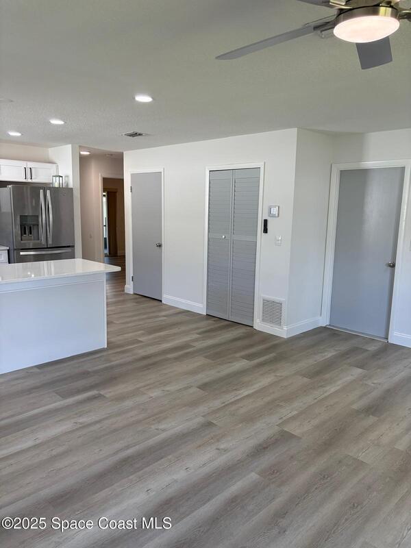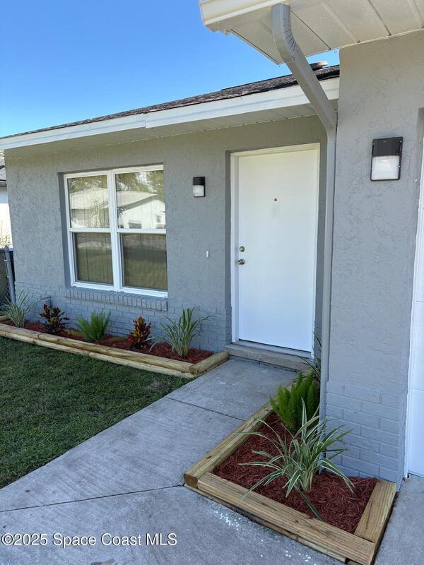 MUST SEE TO APPRECIATE!!!! Fully Remodeled Duplex in October 2025 - NO HOA!!!! Excellent location close to shopping, I-95, beaches, and only 35 minutes to Orlando International Airport. Features brand new upgraded laminate flooring, All new interior/exterior paint, LED Lighting, ceiling fans with remotes and spacious walk-in closets. Beautifully remodeled bathrooms with skylights, plus a brand new kitchen with soft-close cabinets, Lazy Susan, quartz countertops, and island with extra storage. New dishwasher, stove and all appliances are included. Stacked washer and dryer, water heater was replaced in 2016 with thermal expansion tank and compact water softener/filter system. Double pane windows (rated up to 140 mph winds) and all screens and Hurricane Shutters are included. Roof was replaced in 2019. Primary suite offers a sliding door to the screen porch and a fenced backyard with a 9x8 storage shed. Schedule your showing today!!