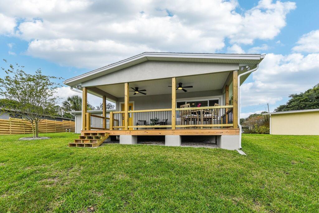 Tucked away at the end of a peaceful cul-de-sac, this completely renovated waterfront gem (including plumbing, electrical, AC and roof) offers the perfect blend of modern luxury and Florida charm. This home offers a light, bright, and open 3-bedroom, 2-bath split plan retreat with an inside laundry room. The upgraded kitchen seamlessly connects to the spacious family room, high-end Pergo flooring flows throughout an airy, open concept design which includes a vaulted master suite with stunning water views. Perched along the dredged Elbow Creek, the property provides easy access for larger boats to the Indian River, with a fixed bridge offering over 20 feet of clearance. There is ample space on this third of an acre lot to install your own dock and boat lift. Spend your mornings on the expansive back porch marveling at gentle manatees and playful dolphins and savor breathtaking sunrises as the Atlantic lights up the horizon. Quick access by boat or car to Frigate's