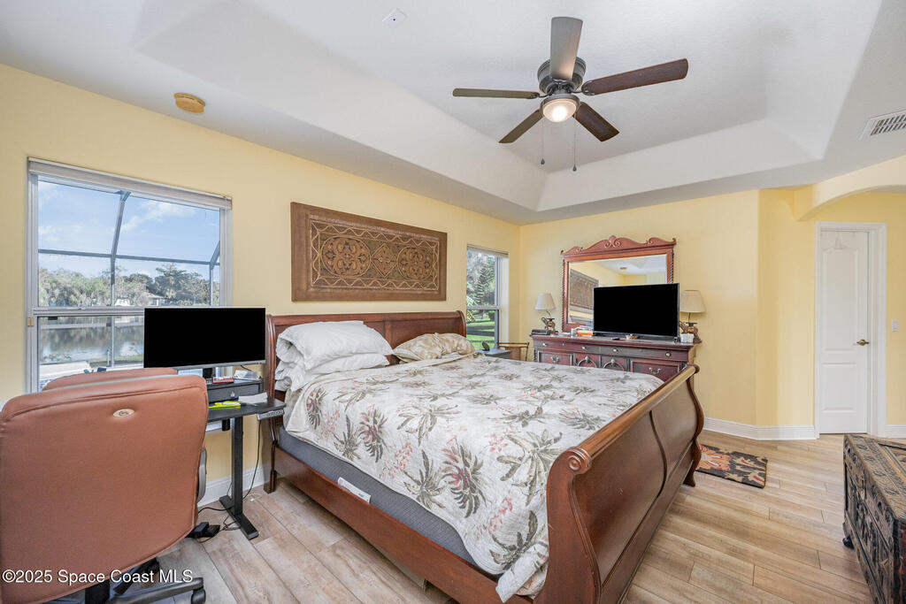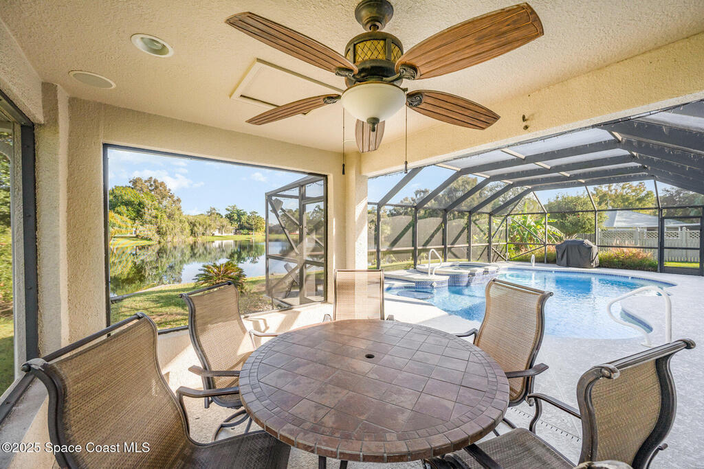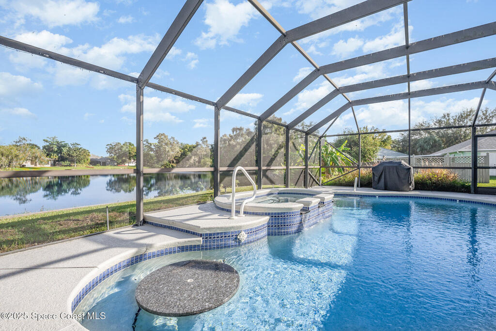 RV or boater's Dream Home! 4 bedroom, 2 bath lakefront home with private pool/hot tub, RV garage (9'9'' entry x 24' deep) and carport for boat or RV (20x40, over 12' clearance). Just minutes from shopping and dining but tucked away from the hustle and bustle with NO HOA! 2005 built home with custom features including 10' ceilings in the living area, tray ceiling in Primary and coffered ceilings in the entry, dining room and flex space. This is a great family home with room for all of your toys!