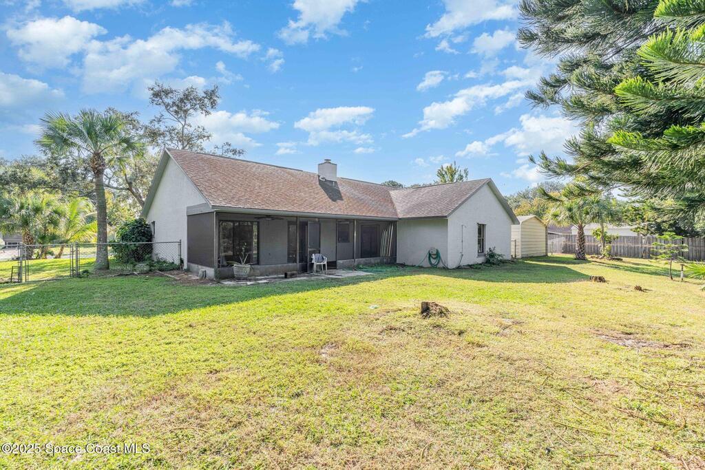 Looking for an extra-large lot in Brevard County? This property could be the perfect fit! This spacious home offers a split floor plan with 3 bedrooms, 2 full bathrooms, and an additional den/family room for flexible living space.Enjoy the outdoors on the large covered porch, and take advantage of the two carport spaces plus a handy storage shed/workshop. The interior and exterior have been freshly painted, giving the home a clean, move-in-ready feel.Energy-saving solar panels are connected to the water heater to help lower your electric bill, and storm shutters are included for added protection.This is an amazing property you won't want to miss!