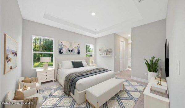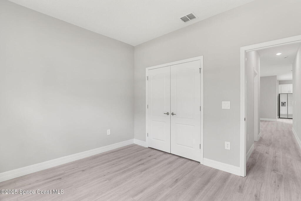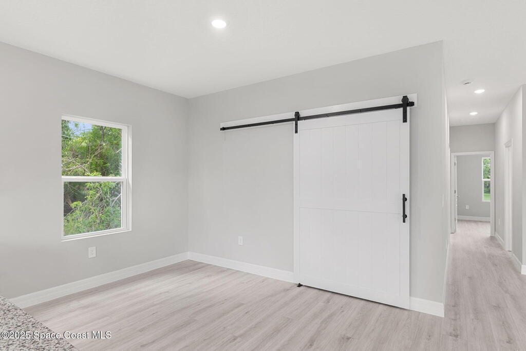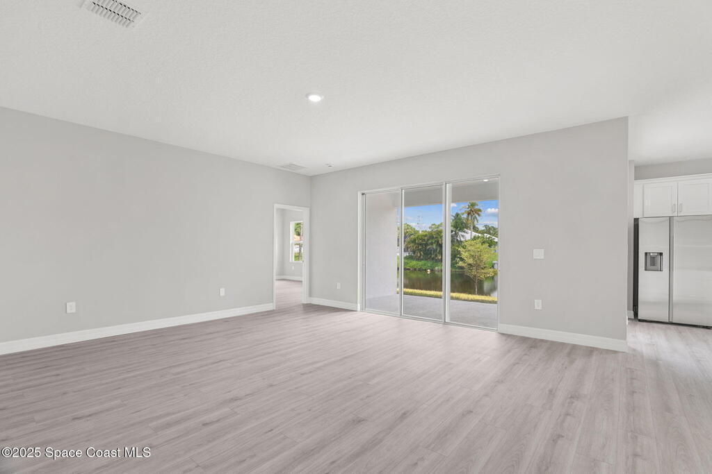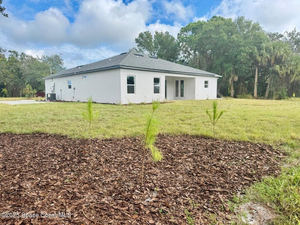 This stunning 4-bedroom, 3-bath, 2,092 sq ft home sits on an oversized 0.34-acre corner lot with a pond and canal behind and on the side, offering rare water views and beautiful sunrises and sunsets. The property features a custom curved paver driveway with RV/boat parking, city water, septic, and FPL service. Inside, enjoy 9'4'' ceilings, LVP flooring throughout (That's right no carpet), and a chef's kitchen with white cabinets, Calacatta quartz countertops, Samsung stainless steel appliances (washer & dryer included), and a white subway tile backsplash with dove-gray grout. The home includes a frameless master shower, glass front door, upgraded Maxim lighting, and Moen chrome fixtures. Exterior upgrades include Shadow Grey shingles, black drip edge, Blue Ridge Cobble stone, and beautifully customized and fully irrigated landscape. A rare blend of premium finishes, modern design, and exceptional waterfront living for maximum privacy.