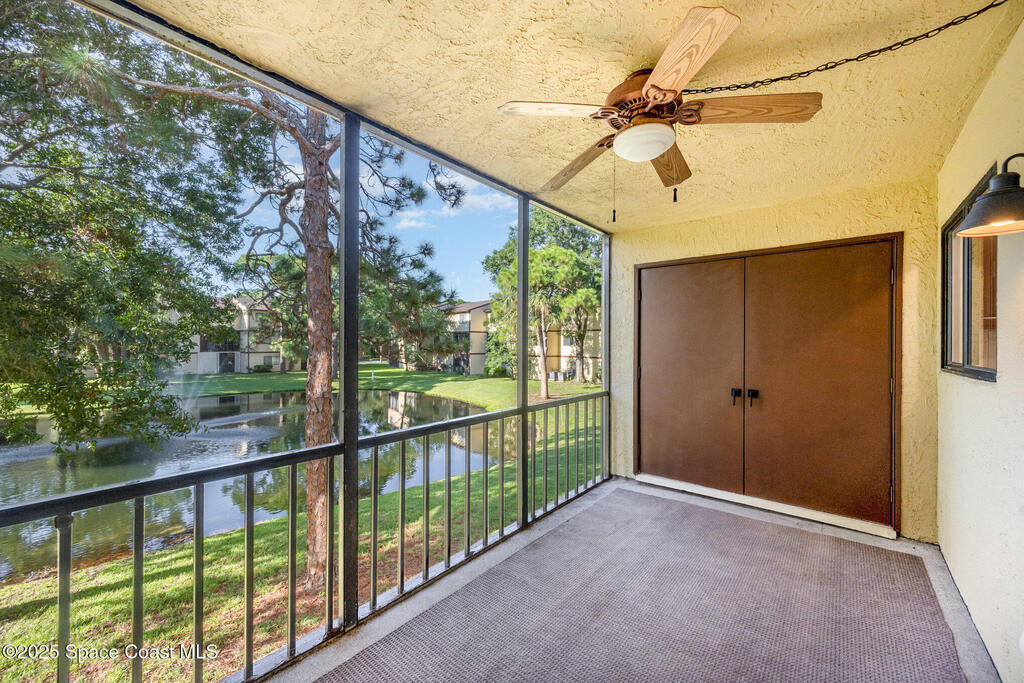 Set in a vibrant, park-like community, this updated 2-bedroom, 2-bath condo offers comfort, style, and everyday convenience. Inside, you'll find modern flooring, a bright color palette, and a kitchen with granite countertops, quality appliances, and plenty of storage. The oversized primary suite easily fits a king bed and includes a generous walk-in closet. The guest bedroom has its own walk-in, and both bathrooms feature clean, refreshed finishes. Enjoy peaceful pond views from the screened patio and the convenience of an in-unit laundry closet. Community amenities include a pool, fitness center, tennis, racquetball, a clubhouse, and RV/boat/trailer storage. Cable and Wi-Fi are included, and annual rentals are allowed. Minutes from the airport, major employers, shopping, dining, and beaches, this condo delivers an easy, energetic lifestyle in a prime Melbourne location.