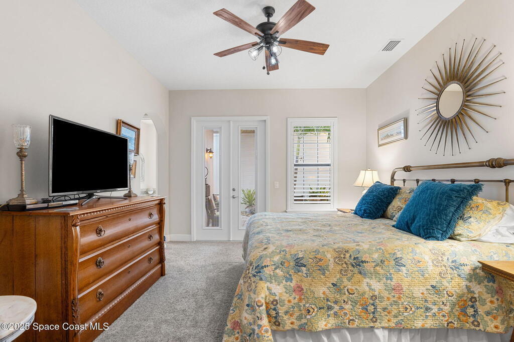 This beautiful home in the Arrivas community, built in 2019, is right in the heart of Viera and available for rent for the first time in December. Home has a desirable sunset/west-facing location and is across from The Avenues Viera, Trader Joe's, Duran Golf Course, and Urban Prime/Food Truck Park. The home is immaculate, bright, and sunny, with a first-floor master suite that opens to the courtyard through French doors. Two bedrooms (one with a porch), two bathrooms, and a laundry room are on the second level. Home has many upgrades, including 10 ft ceilings, a gas stove, hurricane glass etched glass front door, epoxy garage floor, tile/carpet and so much more. Arrivas is a maintenance-free HOA community (owner pays) where all landscaping and exterior features are maintained. High-speed ATT Fiber and very low utility bills (renter pays). The street is quiet with minimal car traffic and has a scenic lake/sunset view every day. See rocket launches right down the street or from the