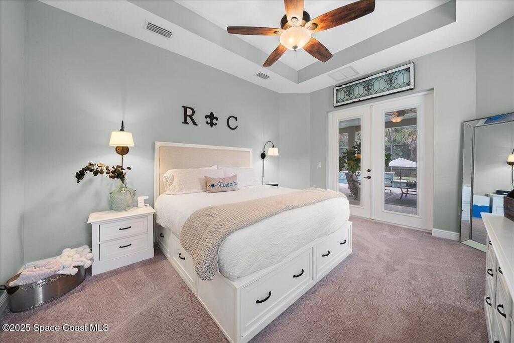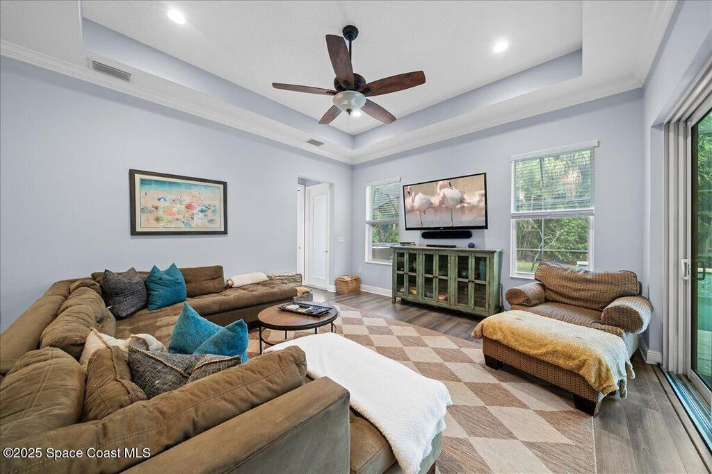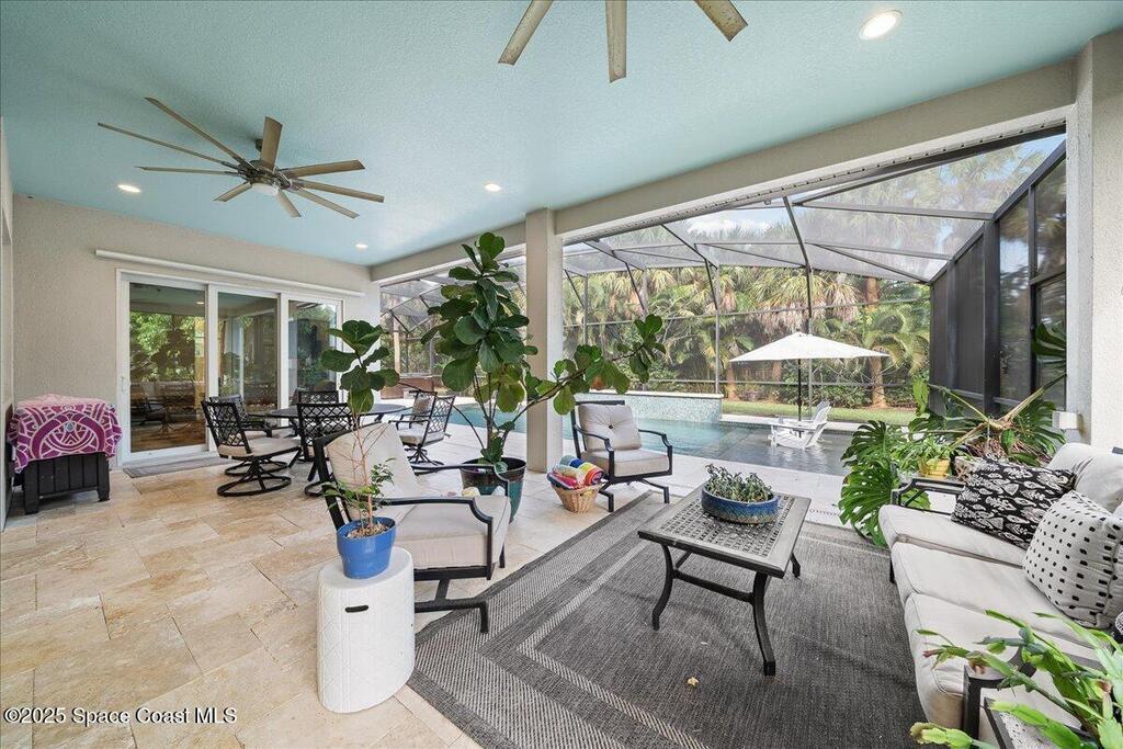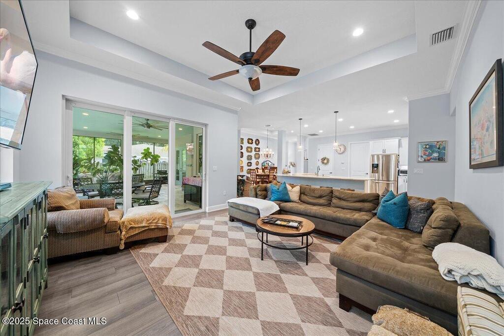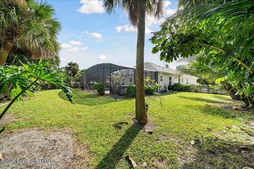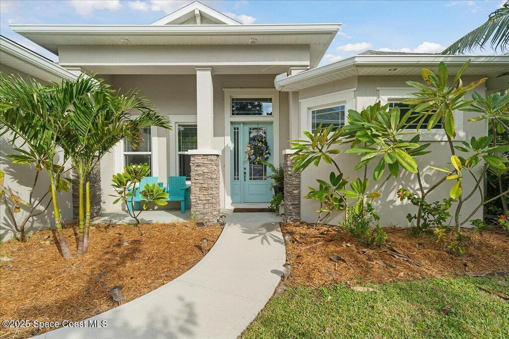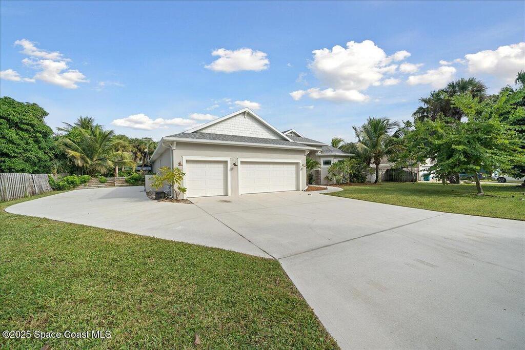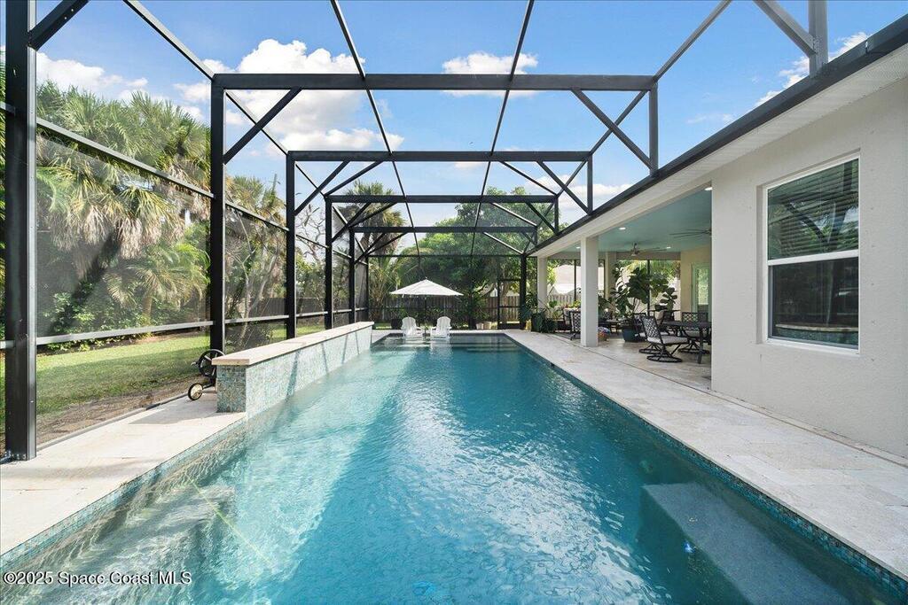 Fall in love with this 2018 Lifestyle-built home that is designed for effortless luxury. This five-bedroom, three-bath residence sits on a generous .41-acre lot--vast for the area--featuring expansive concrete areas for parking and toy storage. The home's footprint was extended two feet south and west, and ceilings rise two feet higher, infusing the space with generous light and air. Full solar panels are completely owned, ensuring energy efficiency and big bill savings. Inside, Cambria quartz Britannica countertops grace every surface, and a walk-in pantry with auto-on lighting keeps everything organized. A high-end wall microwave oven combo, recessed lighting, and counter-height bar seating elevate daily living. Outdoors enjoy a giant, impressive screened in lanai and heated pool with waterfall and beach-entry, a separate five-seat hot tub and outdoor shower. Big backyard to play in! Bonus exterior electric and sewer hook-ups for an RV. Short walk to river pier and ocean access!