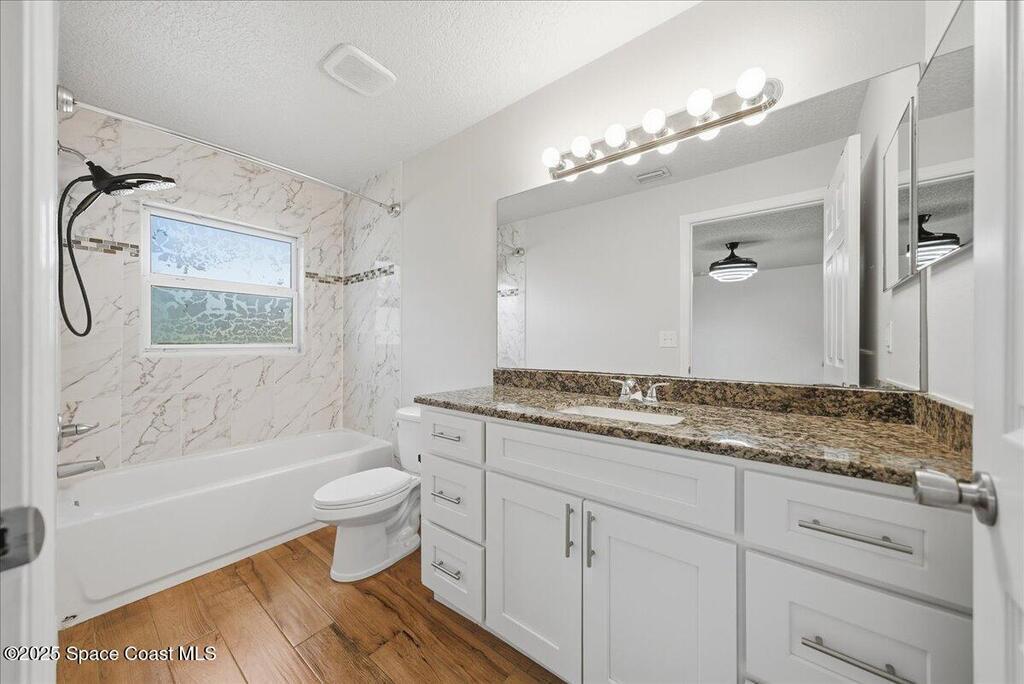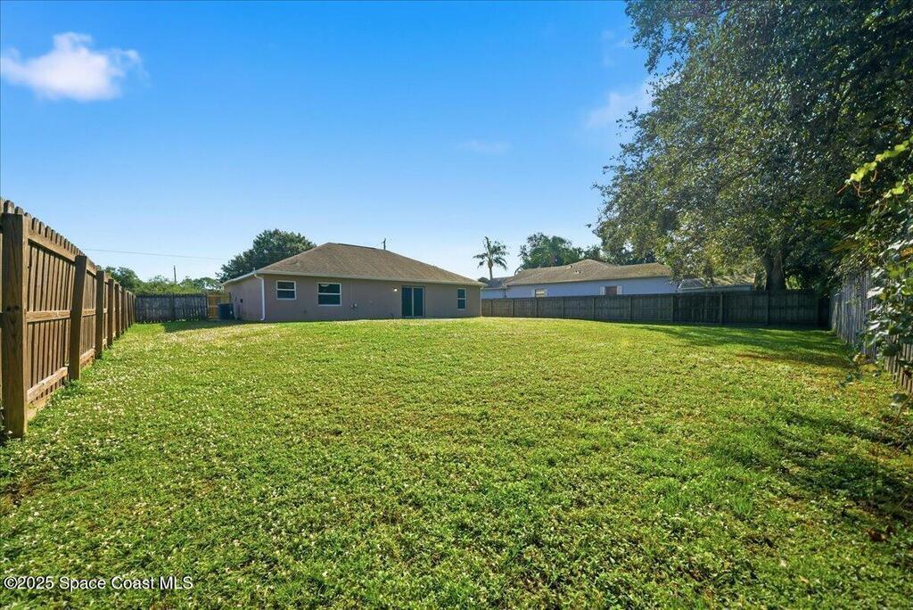 Welcome to 6424 Muller Ave in Cocoa! This beautifully maintained concrete block 3-bedroom, 2-bath home was built in 2015 and offers the comfort of newer construction with thoughtful upgrades. Features include new flooring, fresh interior paint, and vaulted ceilings in the kitchen and living area for an open, airy feel. The split floor plan provides added privacy for the primary suite, while the kitchen and bathrooms were upgraded in 2022 with granite countertops, updated paint, and a new washer and dryer. Enjoy peace of mind with triple-pane hurricane-impact windows, a septic tank serviced in summer 2022, and an exterior recently pressure-washed. The large fenced backyard offers plenty of room for kids, pets, and entertaining. A Ring camera security system is included. Located in a quiet neighborhood with no HOA, just 40 minutes from Orlando Airport, theme parks, and minutes to the beach!