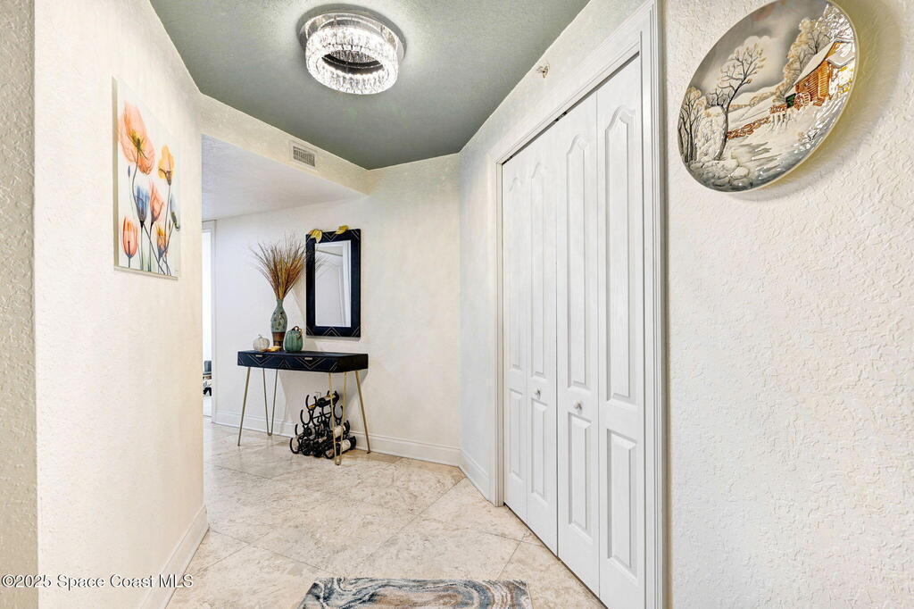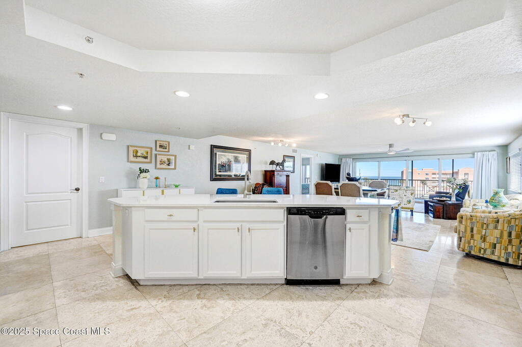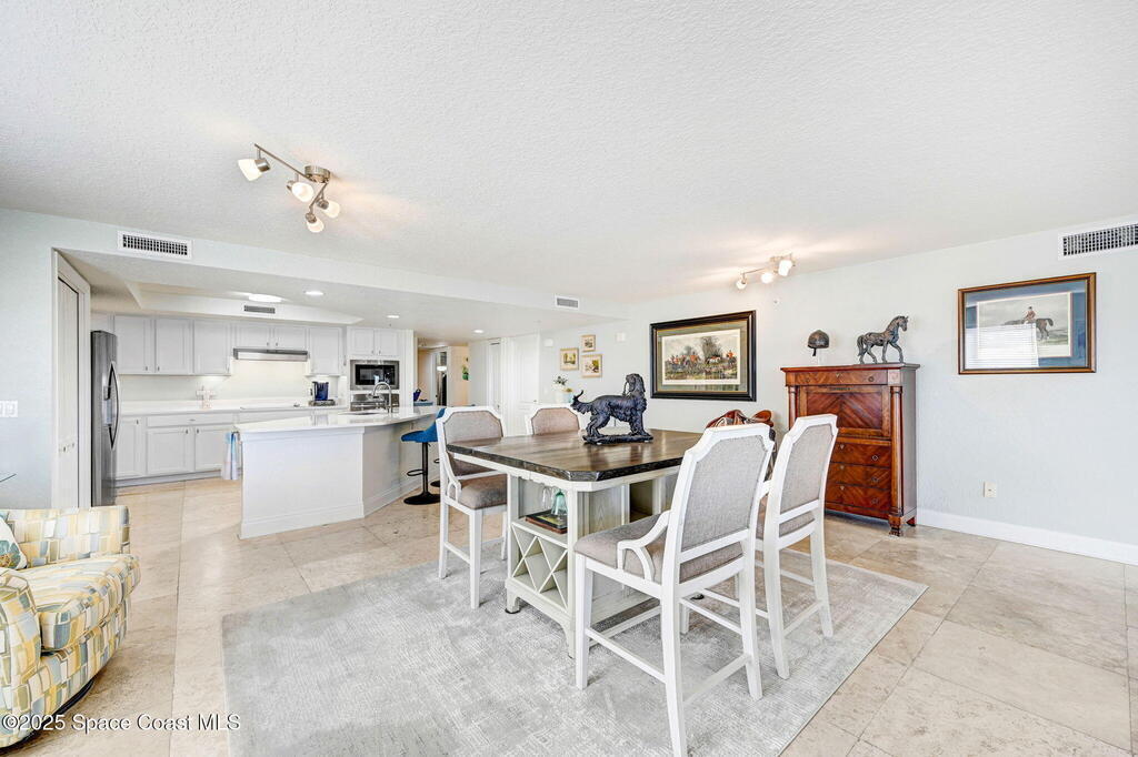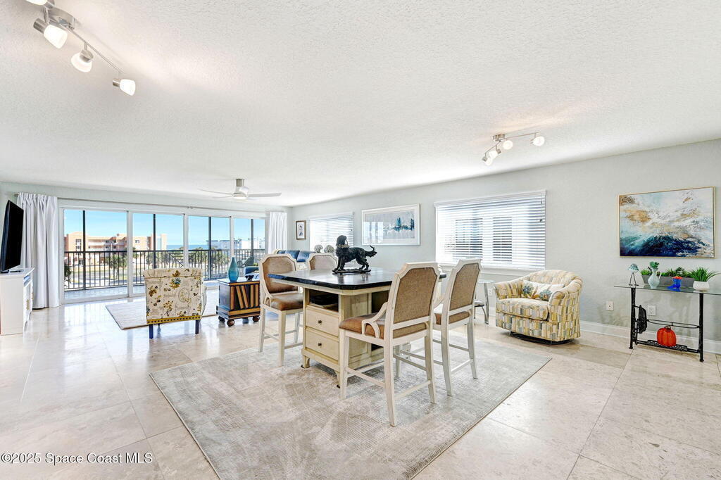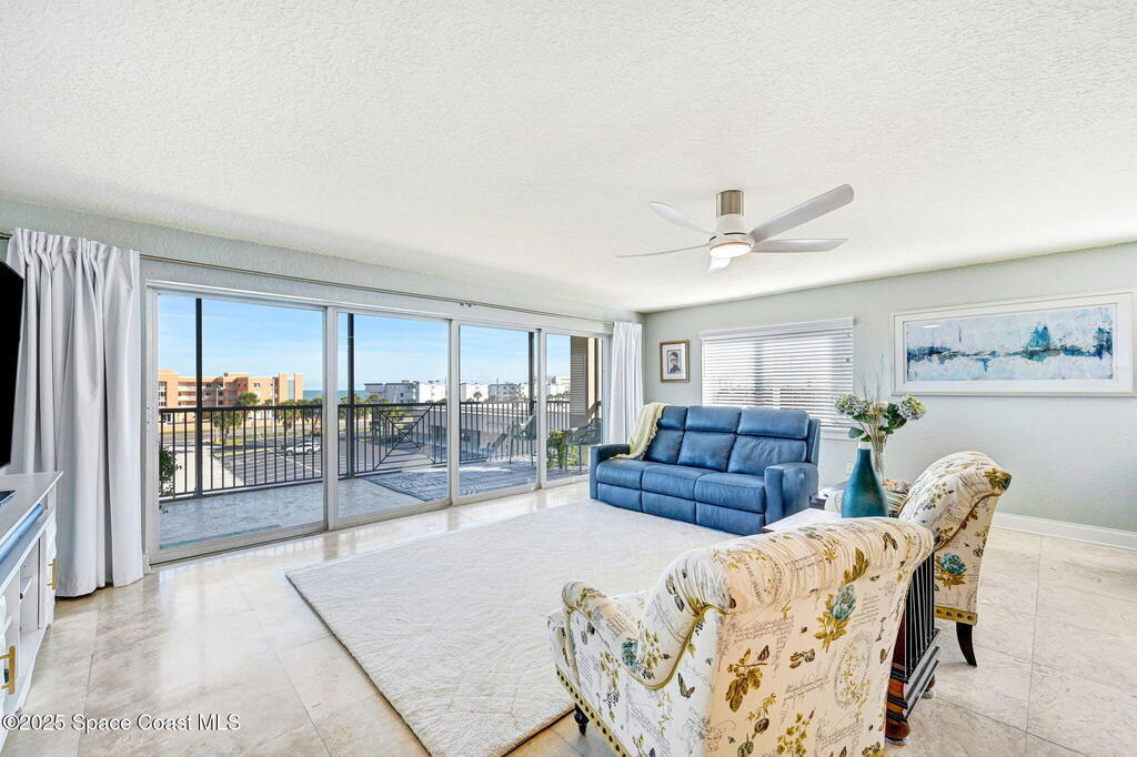 You have just found your new Barrier Island Penthouse Home with wonderful Atlantic Ocean Views. This Stunning 3 bedroom, 2 bath, end unit Penthouse offers; Fantastic Ocean views, Hurricane Impact windows and Doors, Open Floorplan, light and bright, Chefs Kitchen, Quartz countertops, huge kitchen island, breakfast bar, Stainless Steel appliances encompassing dining room and open to large living room, Travertine flooring in main living areas, Carpeted Bedrooms, large in-unit laundry, en-suite primary bedroom with huge shower and double bowl sinks, 2 generously sized guest bedrooms, a huge 33' screened covered patio, and 2 private under building garage parking spots #2 and #4. This wonderful Beachside community offers; Community Pool, BBQ, Clubhouse, Fitness center, pickleball and tennis court. Enjoy being across Jimmy Buffett Memorial Highway (A1A) from the Atlantic Ocean and Beaches. Close to A rated Schools, Shopping, Dining, and Entertainment. Enjoy Florida Beachside Living!!