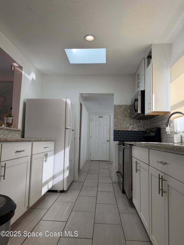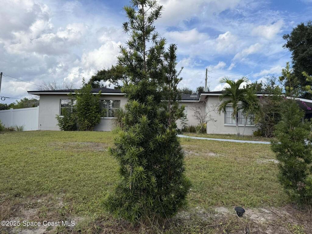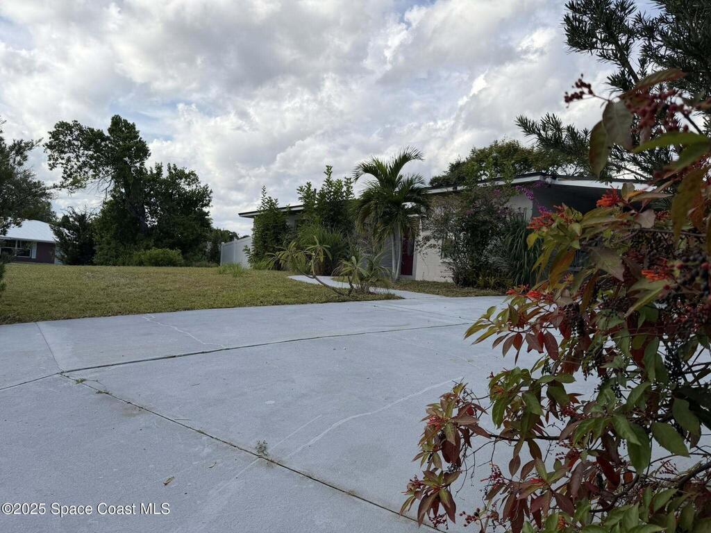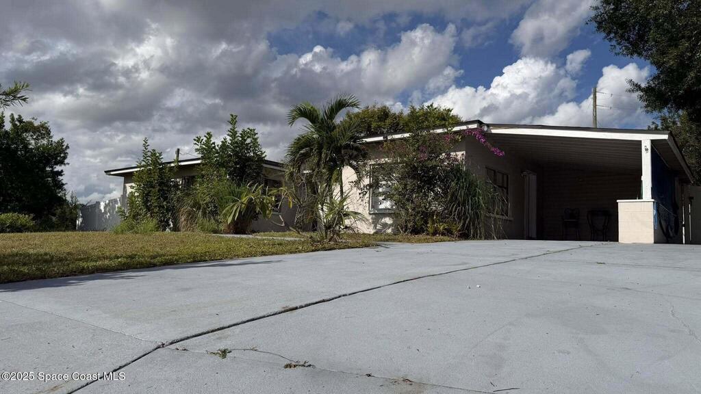 Seller motivated!!! Beautiful concrete block home on a spacious .28 corner lot located near the Melbourne Airport, beaches, and the vibrant Arts District. This property offers a an open carport, and a freshly updated bathrooms. Two driveways provide ample parking space, making it convenient for you and your guests. The fenced-in backyard offers plenty of room for outdoor activities, gardening, or simply enjoying the open space. Natural light fills the home through modern windows and a skylight, creating a bright and welcoming atmosphere. Surrounded by greenery in a peaceful, quiet location, this home is ideal for comfortable Florida living with easy access to shops, dining, and entertainment