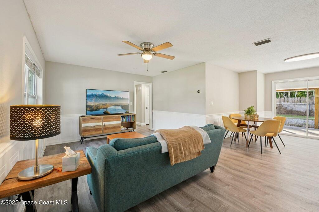 Beautifully updated Merritt Island home featuring a brand-new metal roof (2025) and freshly painted. The home offers an upgraded kitchen with modern appliances, 2020 window updates, and a 2020 electric panel for added reliability. Exterior features include a covered terrace, paver patio, and a paver driveway (3 years old) with an additional driveway on the opposite side. Property provides on-premises parking for up to 6 vehicles, plus corner space ideal for boats, RVs, or motorhomes. City water and no HOA. Excellent location just 10 minutes to Cocoa Beach, 45 minutes to Disney, and zoned for top-rated Edgewood Jr/Sr High (#9 in Florida). Move-in ready and close to shopping, Port Canaveral, and Space Coast attractions.