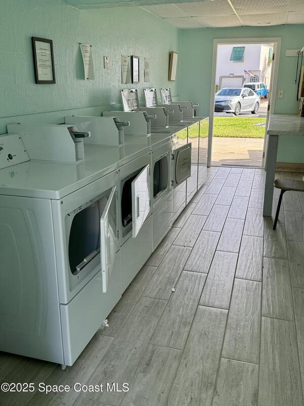 JUST ONE BLOCK FROM THE BEACH! This bright and airy 1-bedroom, 1-bath end-unit condo in Cape Canaveral is the perfect beachside escape. Natural light pours through new windows, highlighting the open layout and tile flooring throughout. Enjoy second-floor views of the sparkling pool from this FULLY-FURNISHED, MOVE-IN-READY unit. On-site laundry, bike rack and owner's storage shed add convenience. Relax by the pool, fire up the BBQ, or stroll to the beach via public access just a minute away. Conveniently located only six minutes from Port Canaveral and the iconic Ron Jon Surf Shop, with waterfront dining, shopping, and surfing close by. With a strong rental history and only a one-month minimum, this charming condo is ideal as a vacation home or investment property. Don't miss your chance to live the coastal lifestyle--schedule your private showing today!