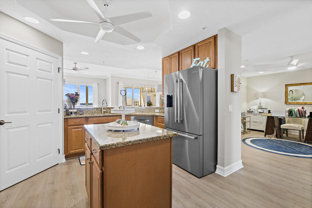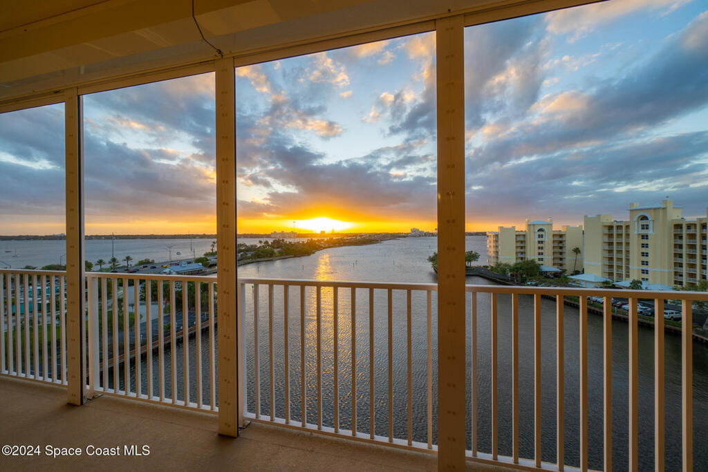 Enjoy breathtaking sunrises and endless Indian River views from this 7th-floor 3-bedroom, 2-bath condo in Island Pointe. The updated kitchen offers granite countertops, new Bosch stainless-steel appliances, a walk-in pantry, and a large island ideal for cooking and entertaining. Natural light fills the open floor plan through the balcony sliders. A versatile bonus room can be used as an office, den, or dining area. The spacious primary suite features his-and-her closets and a relaxing bath with dual sinks and a jetted tub. A private garage near the building entrance adds convenience. Watch ships and rocket launches from your balcony! Resort-style amenities include two heated pools, spas, a sauna, fitness center, clubhouse, and tennis and basketball courts. Conveniently located near Cocoa Village, beaches, Port Canaveral, and Merritt Square Mall. Milestone & SIRS complete--no assessment! Schedule your private showing today!