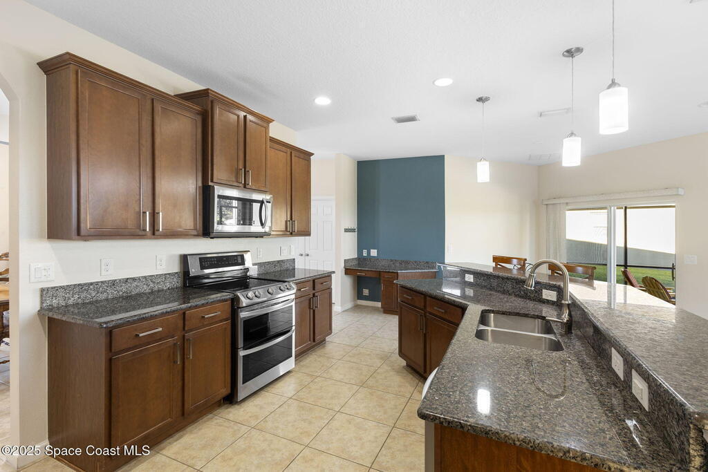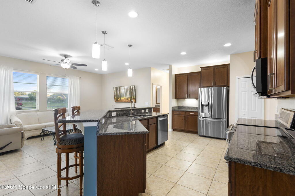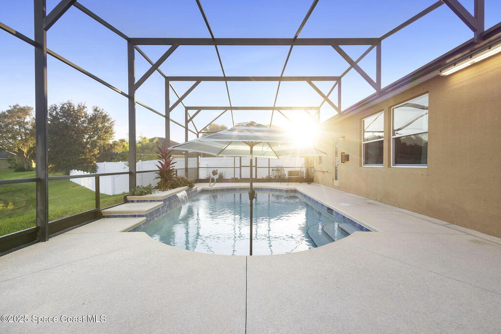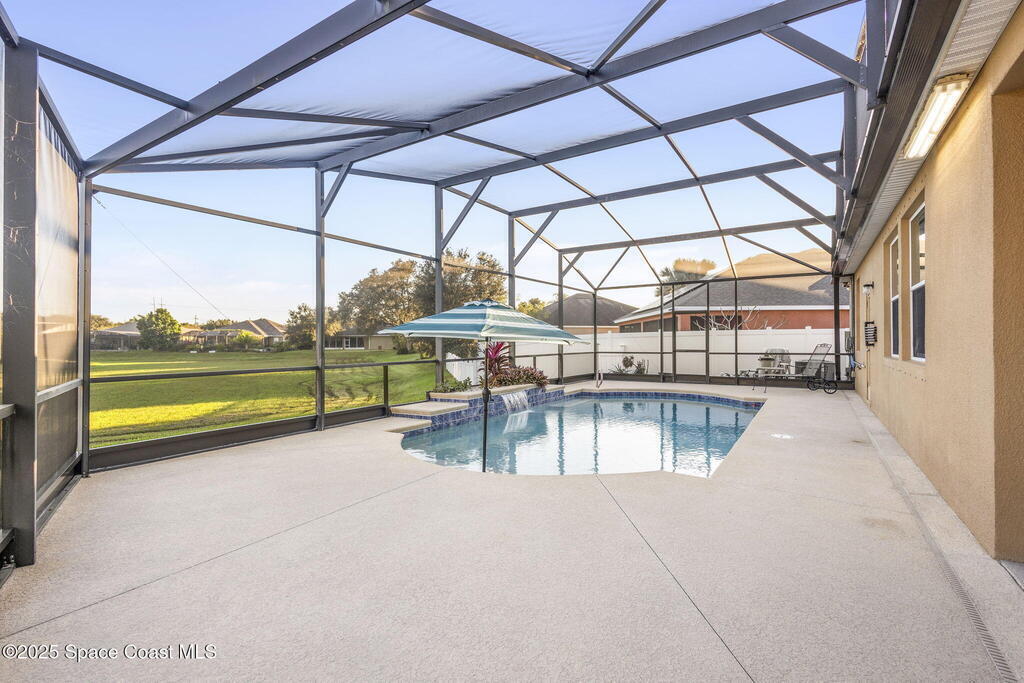 Perfectly landscaped and thoughtfully designed, this inviting pool home offers everything buyers want in a well-kept Florida retreat. Located in a wonderful neighborhood and backing up to a wide drainage field, it provides both privacy and tranquil views.Inside, quality finishes shine throughout. This 3-bedroom, 2-bath home includes a spacious flex room and an open layout ideal for everyday living. The large kitchen features beautiful granite countertops, stainless steel appliances, and a generous breakfast bar that makes cooking and gathering a breeze. Ceramic tile flows through the main living areas, with comfortable carpet in the bedrooms.The screened patio leads to a stunning saltwater pool with a waterfall feature, creating the perfect backdrop for relaxing or entertaining. The newer refrigerator and dishwasher add peace of mind, and the primary suite offers a serene escape with a soaking tub, separate shower, and dual sinks. Stop by and see this gorgeous home and pool!