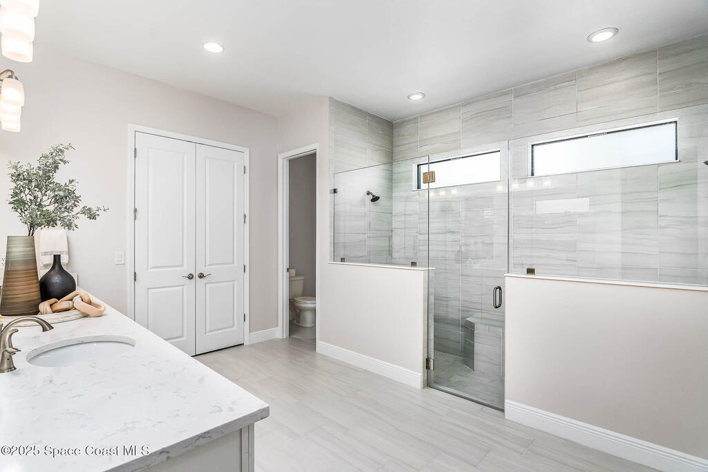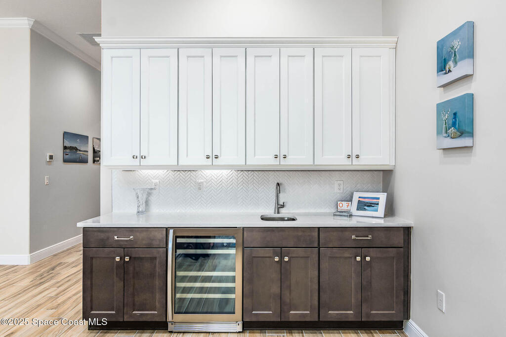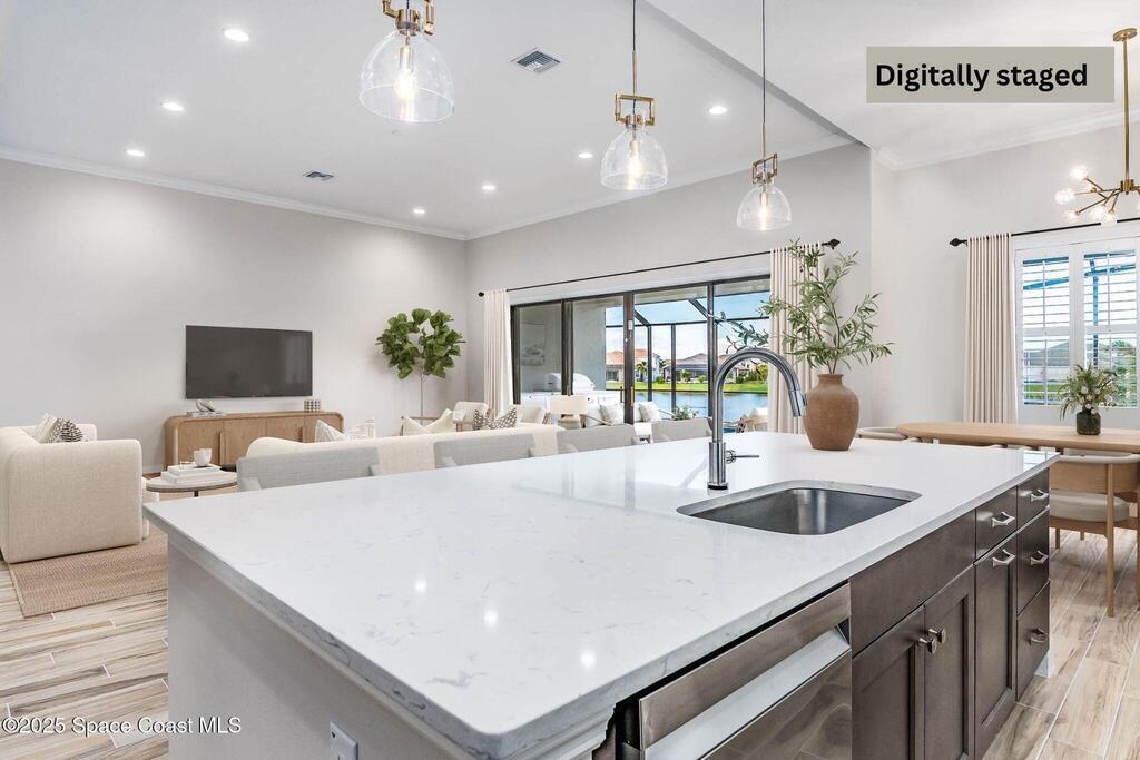 A new standard in Viera living! This home outshines new builds w/ customizations the builder no longer offers. Set on a quiet cul-de-sac, this 0.27-acre lakefront lot boasts an oversized front yard & extended tranquil water views. Enjoy a pool & spa from the supersized lanai, pre-plumbed for an outdoor kitchen. The gourmet kitchen is a chef's delight w/ wall ovens, gas cooktop, wine fridge, & a power pantry w/ 2nd refrigerator, dishwasher & sink. Upgrades include 3 HVAC zones for ultimate comfort, built-in wall pest defense & smart features like WiFi cameras, thermostats & garage door. Wood-look tile, tray ceilings & plantation shutters on impact windows add elegance. Every bdrm + bonus rm have a private bath & the owners' ste offers an oversized walk-in closet, large linen closet & dual showers. Set in an A-rated school district near top dining, golf, shops & just 15 min. to the beach. Here modern comfort & a remarkable lakeside setting blend to create the perfect place to come home!