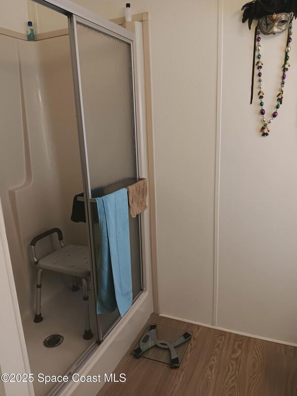 Enjoy the enclosed front porch withTherapeutic spa to ease away sore muscles or relax with family and friends. Many updates thru out the home include air conditioner 2021, skylights 2021, entry door 2024, vapor barrier and tie downs 2020, tung and groove flooring, new washer, porcelain sinks and toilets. Updated plumbing. Easy to use Hurricane retractable adjustable shutters Barefoot Bay offers many amenities including 3 pools and golf course. Something for all ages. Best of all you own the land!
