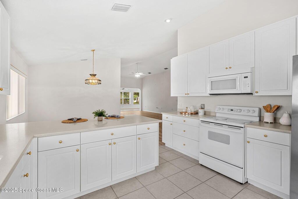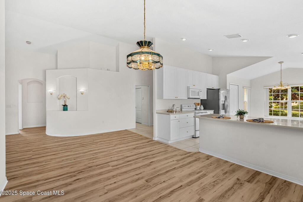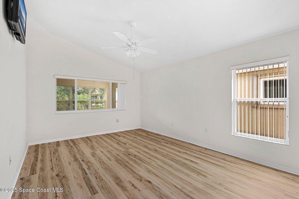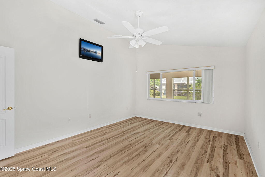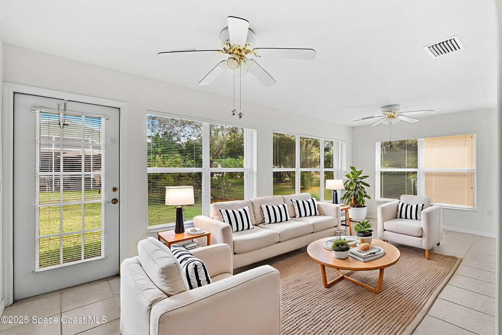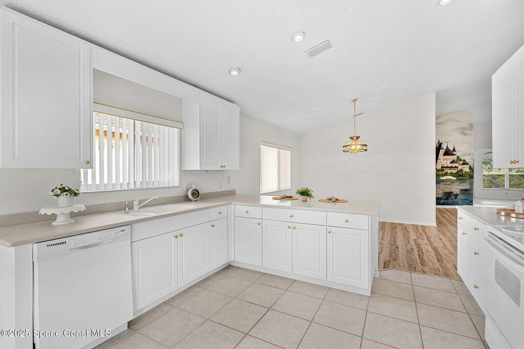 Looking for a low maintenance living in an Active Adult Gated community? Then Pine Creek is the place for you! Conveniently located in the heart of Melbourne, this 3BD/2BA home offers stunning curb appeal with a paver driveway & manicured landscaping. Inside, vaulted ceilings enhance the light-filled spaces. The eat-in kitchen features white cabinetry, Corian countertops & a breakfast bar, while the spacious primary suite includes a large walk-in closet, dual sinks & walk-in shower. Enjoy the sunroom flooded with natural light, plus the convenience of a laundry room w/ utility sink. Peace of mind comes w/ accordion shutters, Brand New LVP flooring in 10/2025, a 2021 roof & 2020 HVAC. Community amenities include a clubhouse, pool, spa, fitness room, weekly activities & social gatherings. The well-run HOA ($836/quarter) covers cable, internet, lawn care, sprinkler maintenance & exterior painting every 8 years. Close to shopping, dining, golf, tennis & the beaches!